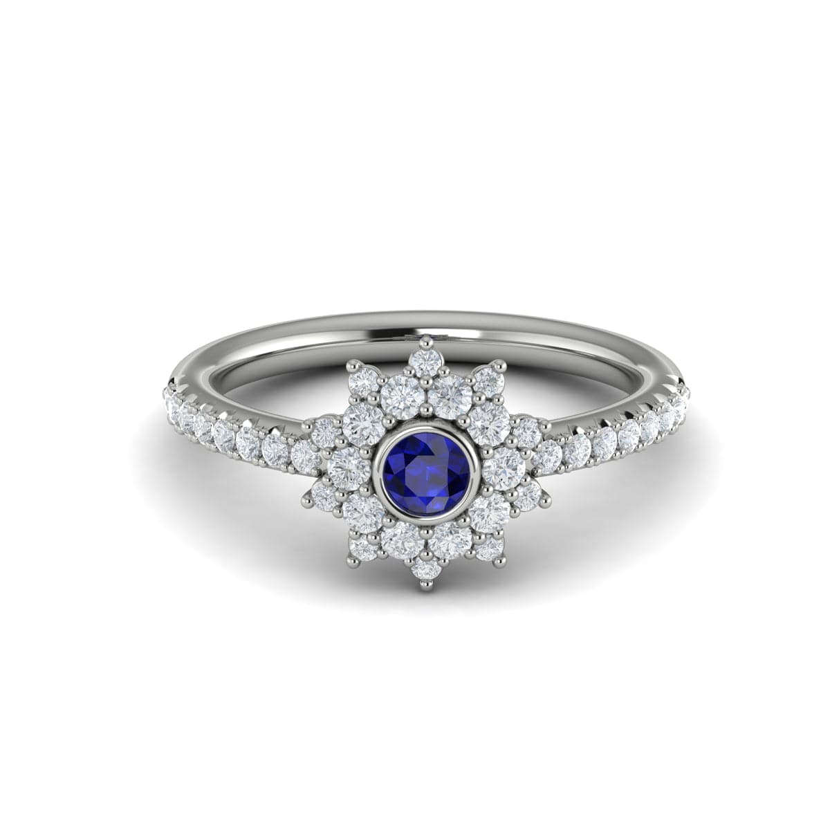 Diamond Starburst with Blue Sapphire Centerstone Ring