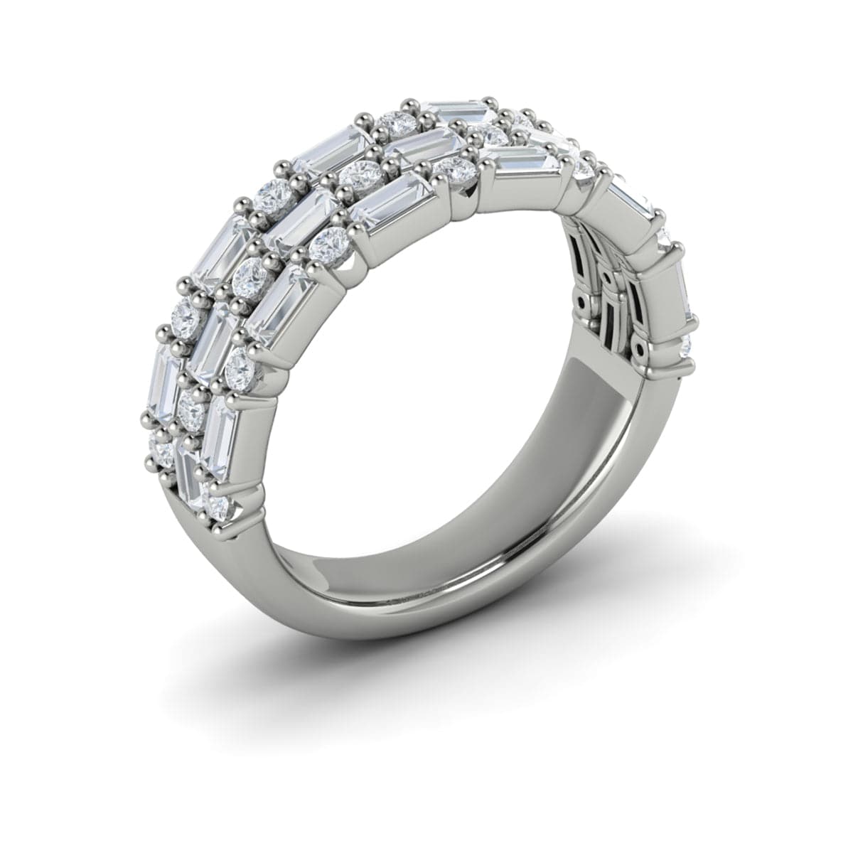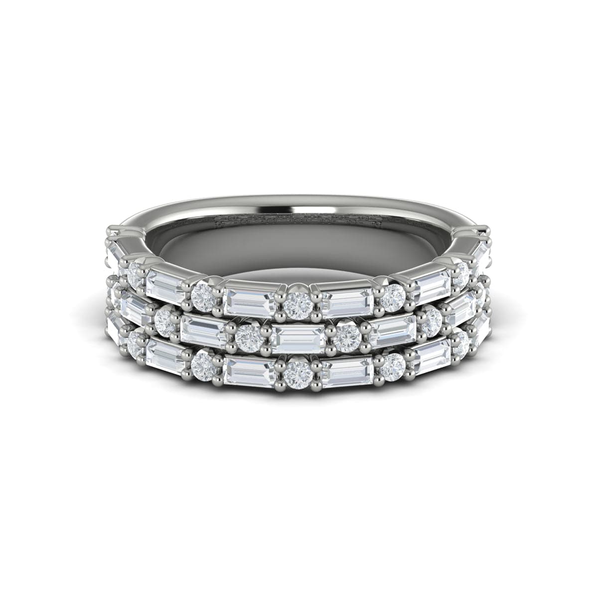 Diamond Baguette and Blue Sapphire Three Row Ring