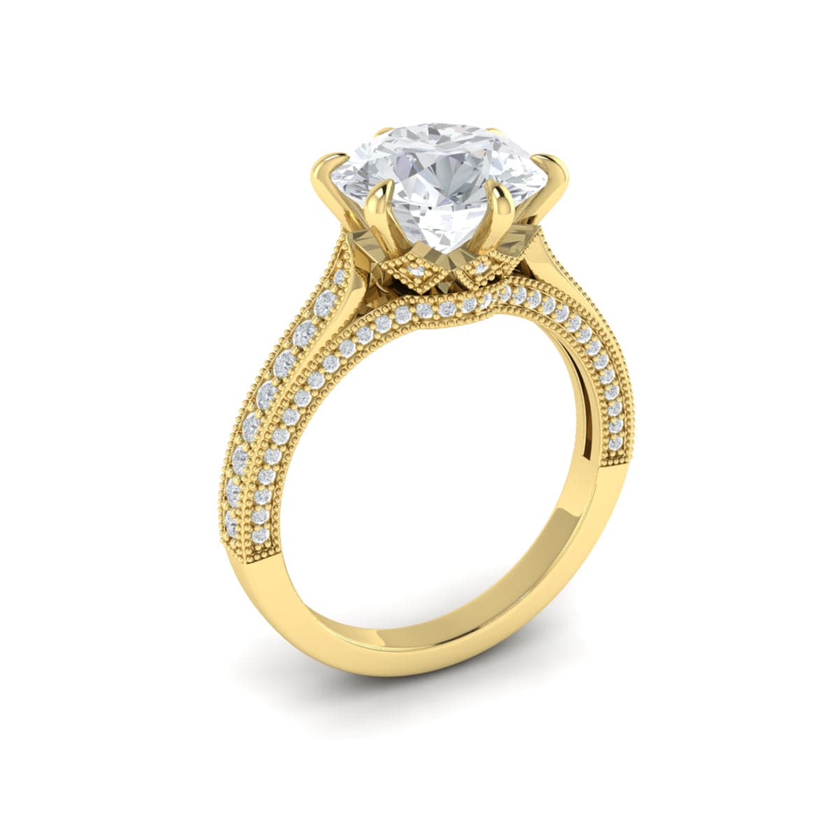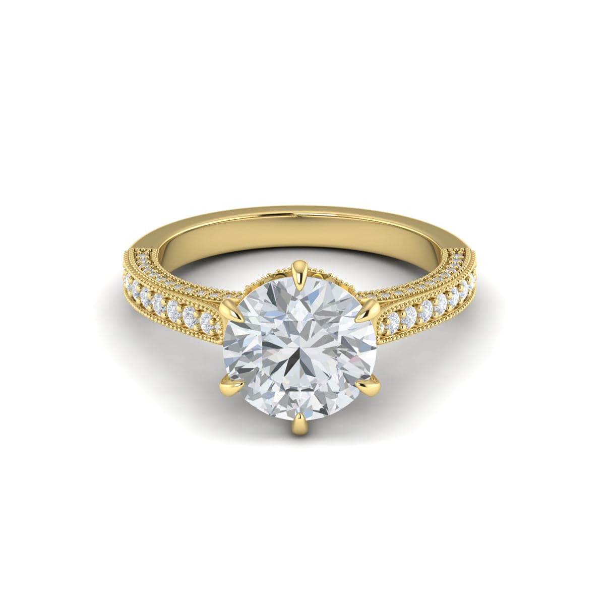 Six Prong Engagement Ring with Milgrain and Diamonds
