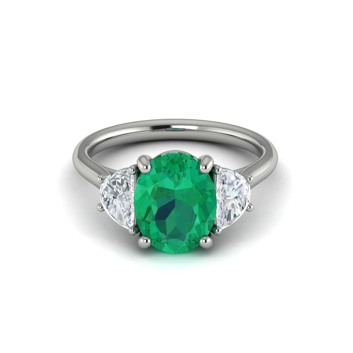 Three Stone Engagement Ring with Half Moons