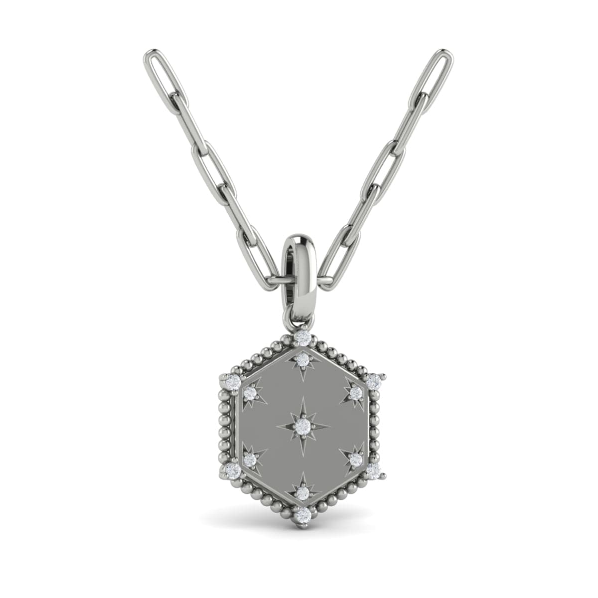 Star Diamonds and Bezel Hexagon Pendant Necklace