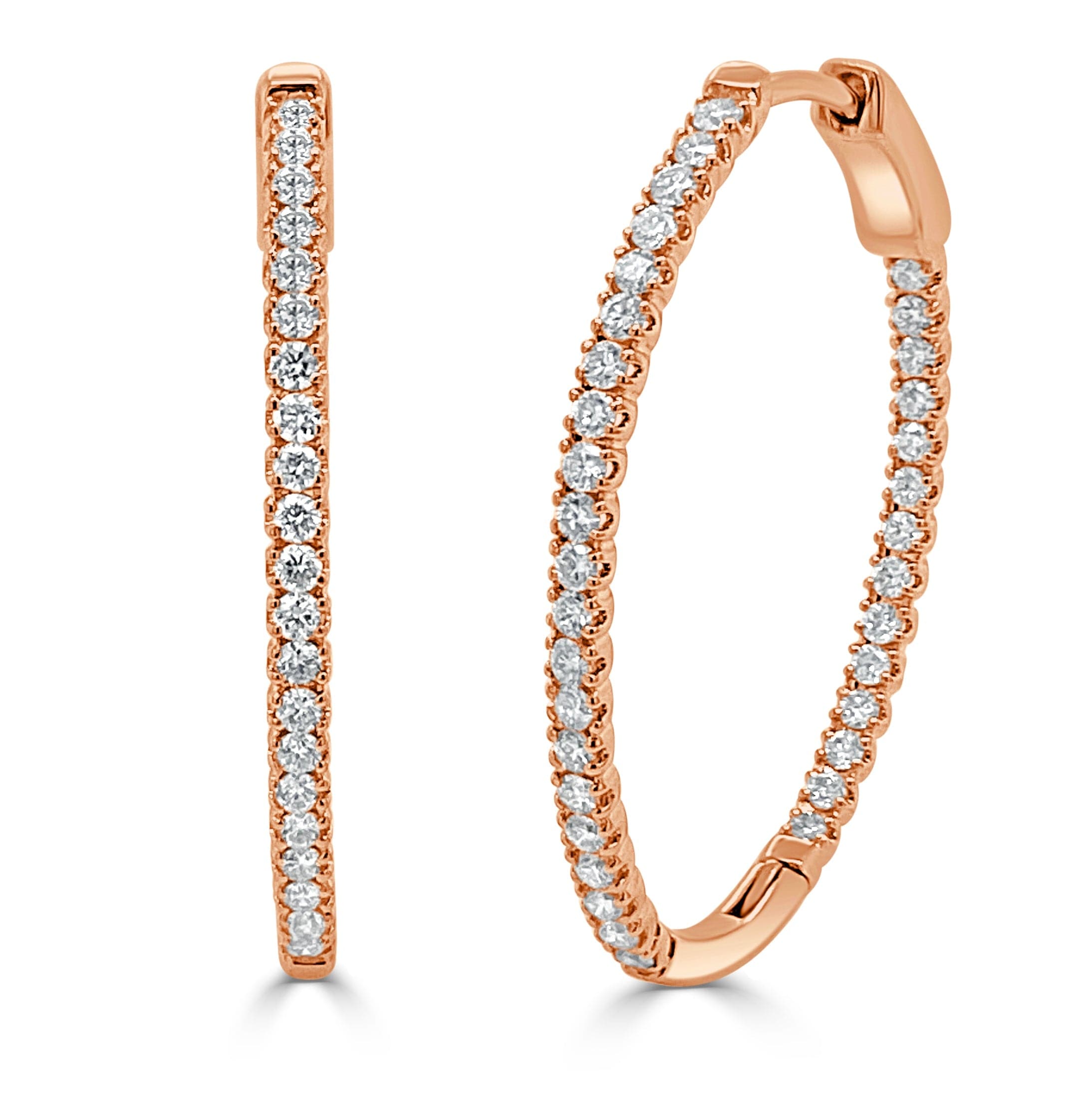 14k Gold & Diamond Skinny Hoop Earrings - 1"