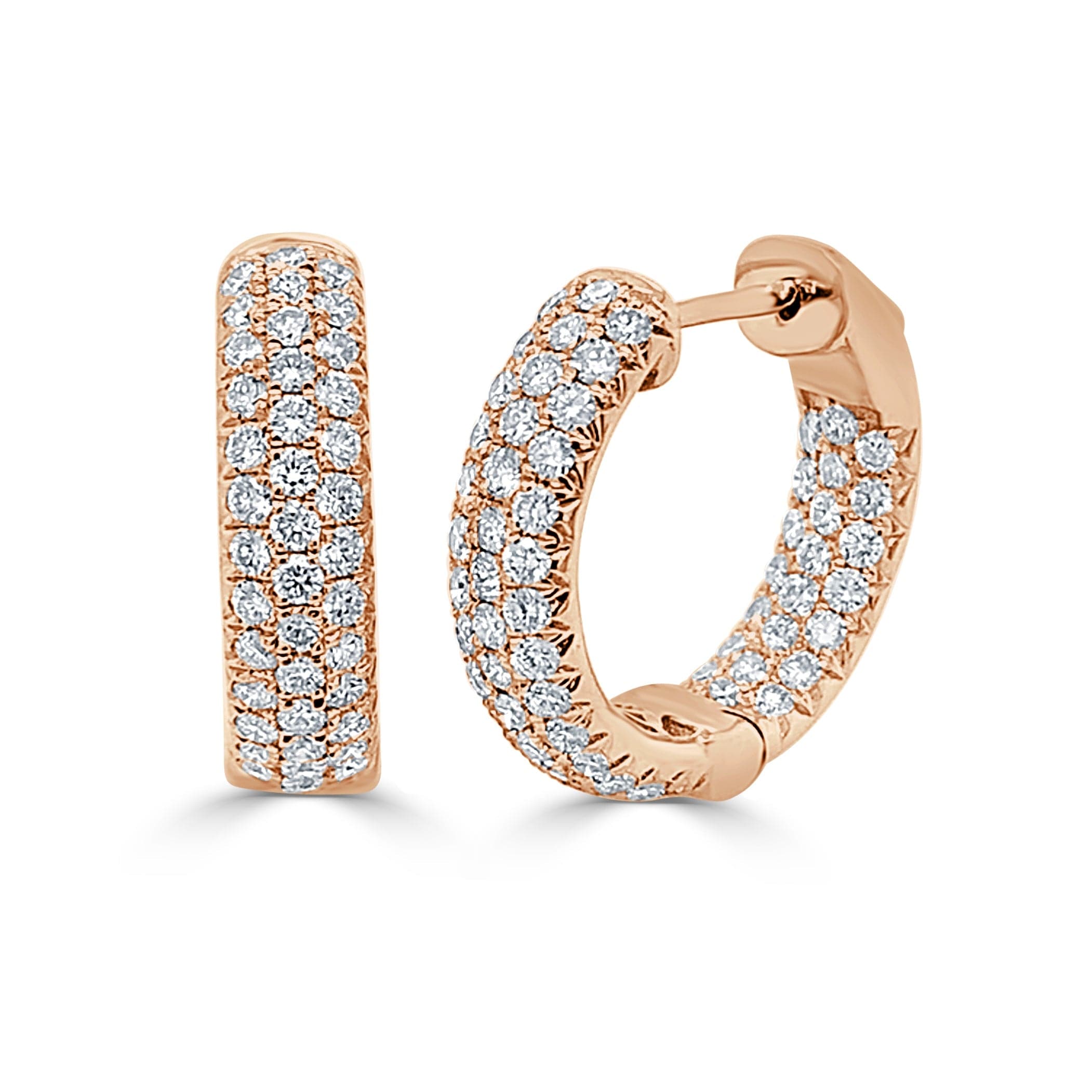 14k Gold & Diamond Skinny Hoop Earrings 1-1/2"