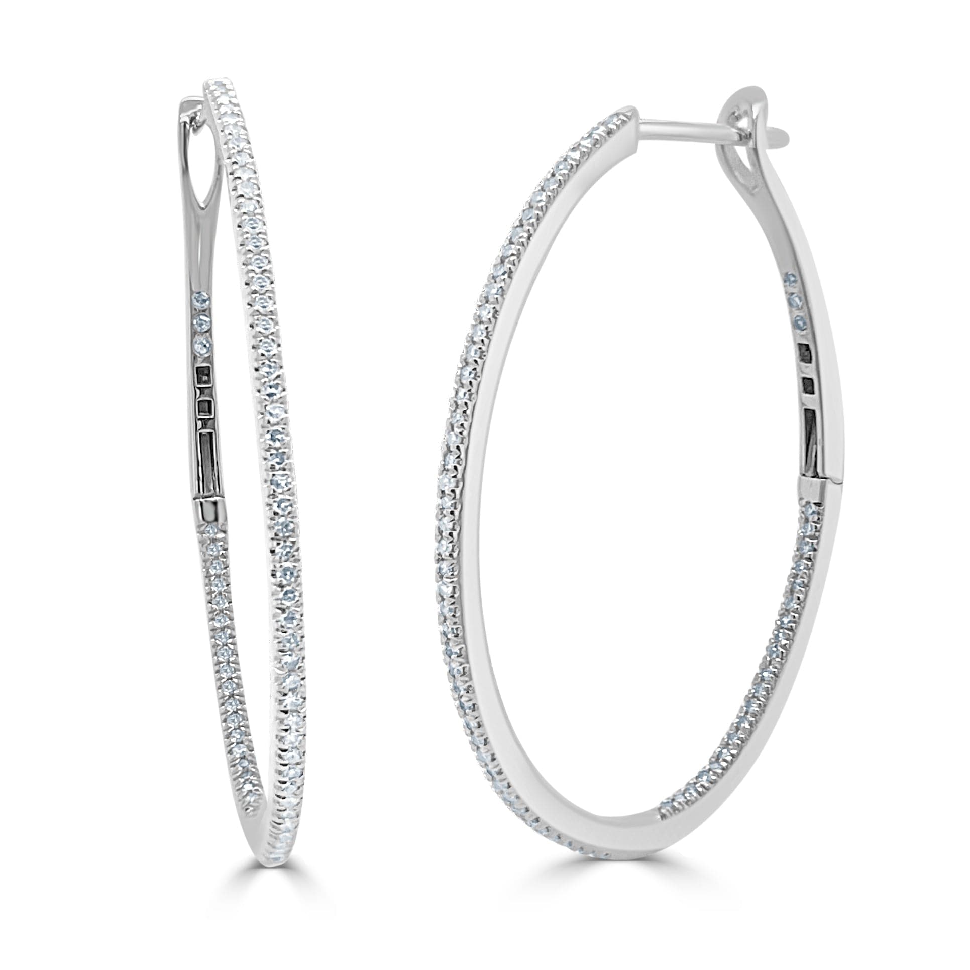14k Gold & Diamond Skinny Hoop Earrings 2"