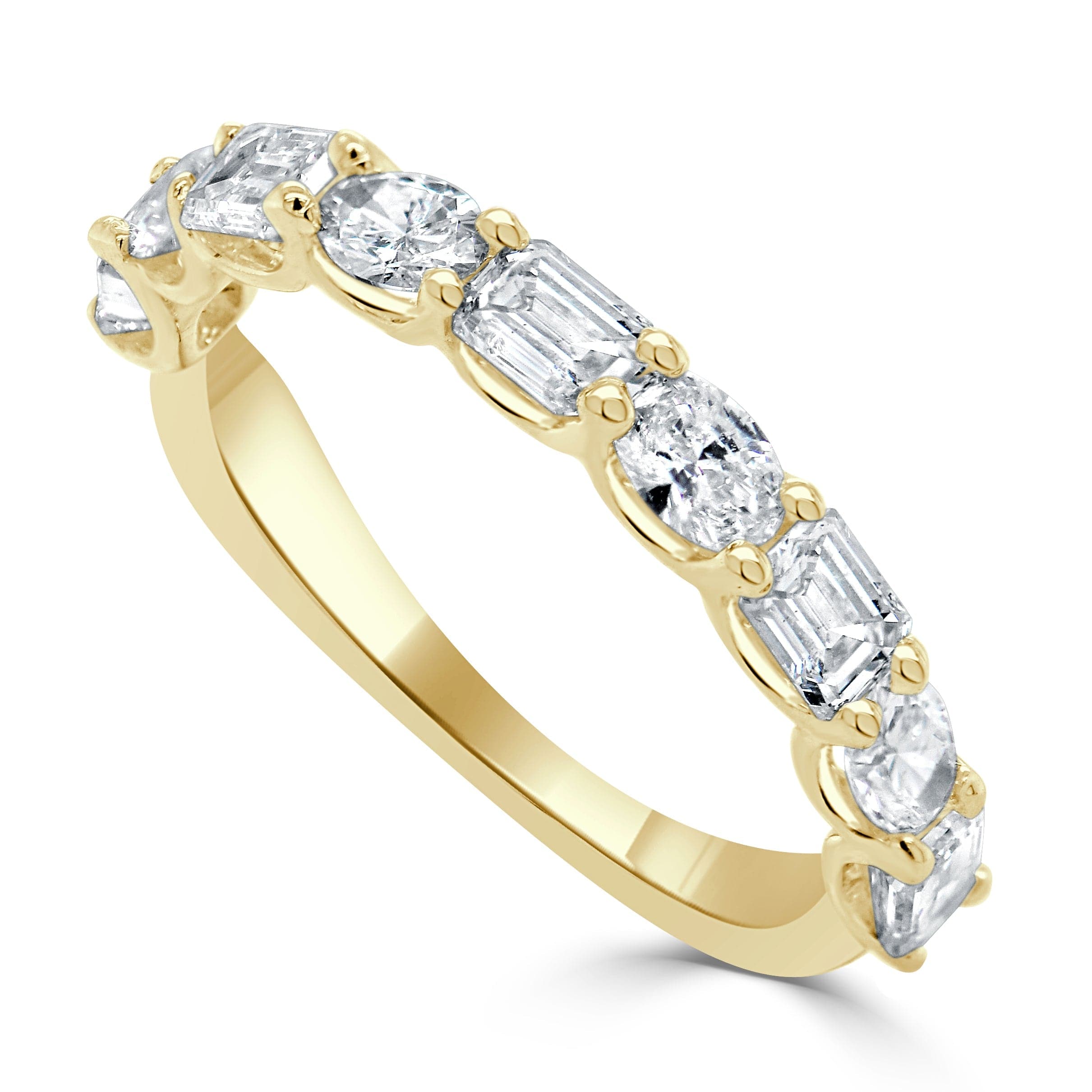 14k Gold Emerald-Cut & Oval Diamond Ring