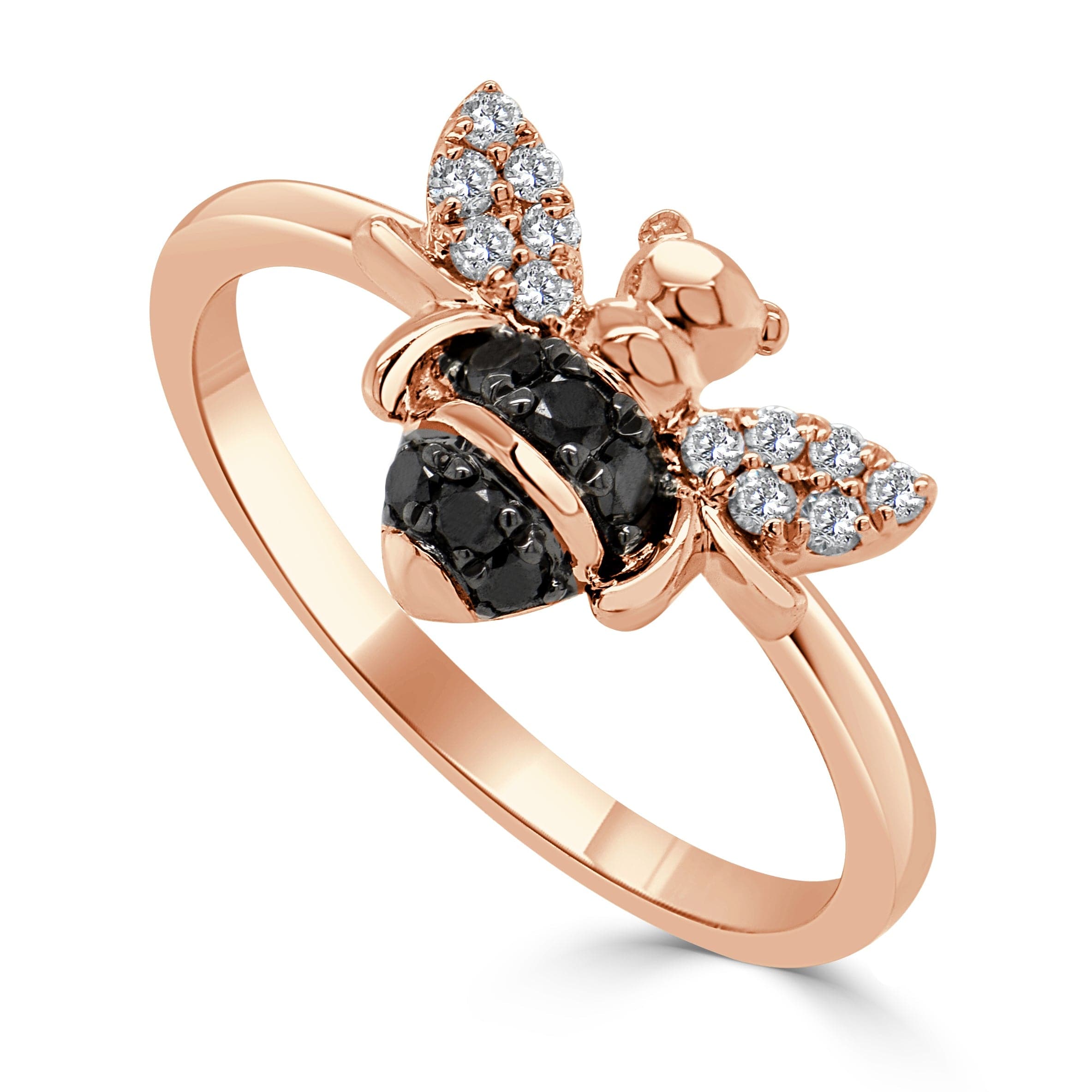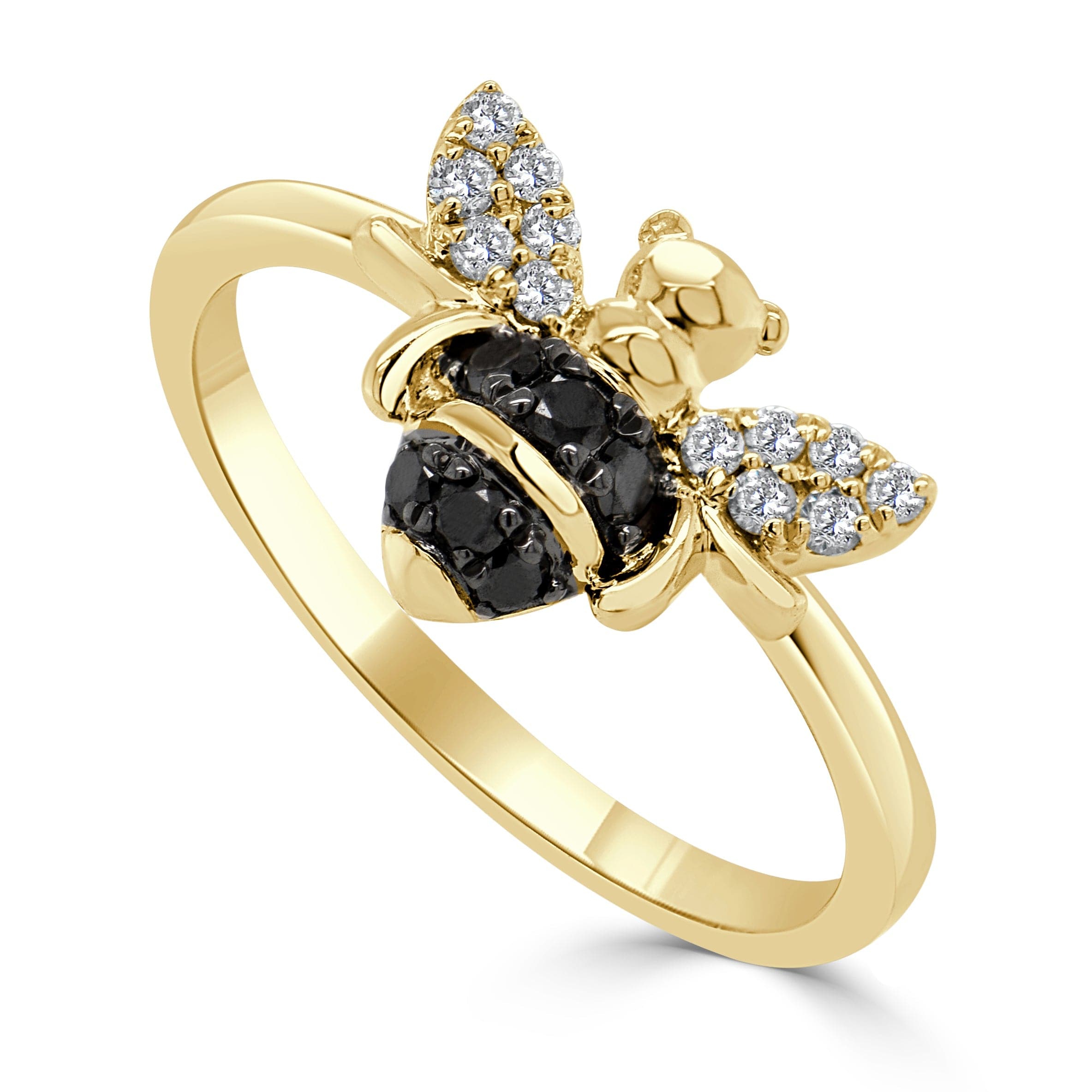 14k Gold Black & White Diamond Bumble Bee Stud Earrings