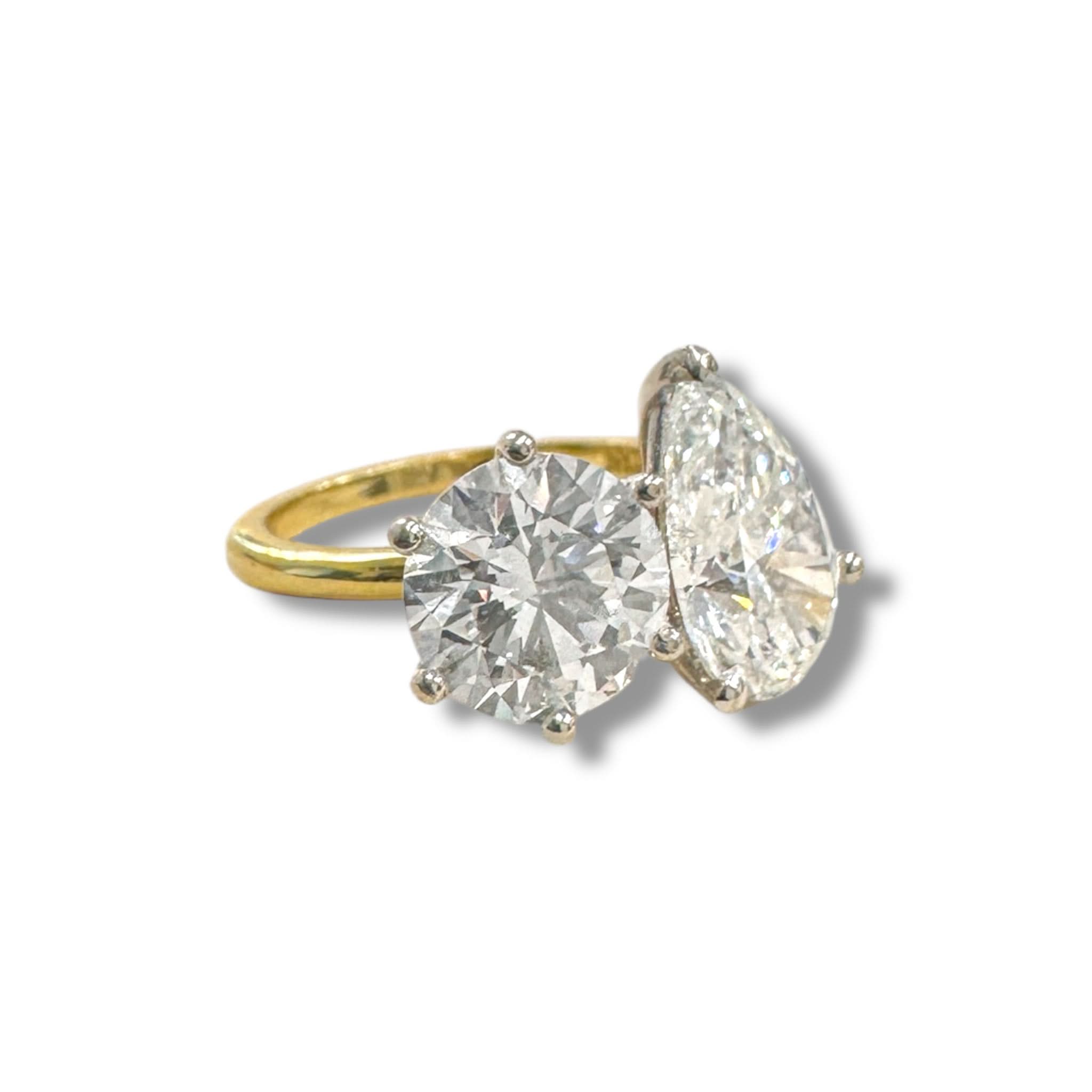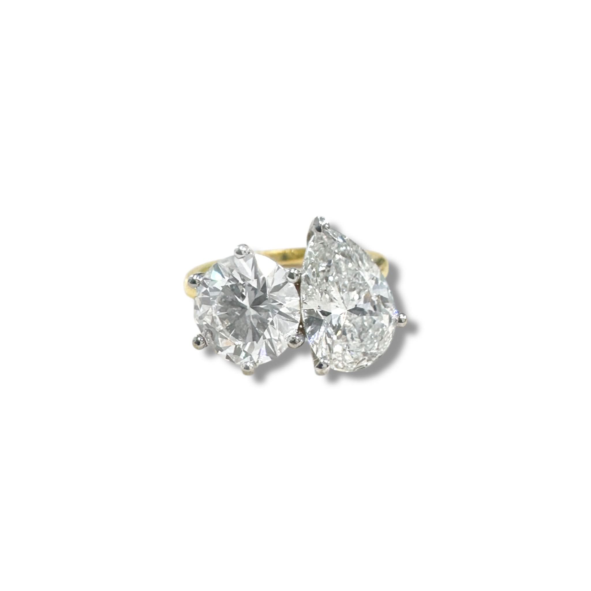 Toi et Moi Engagement Ring - Round Brilliant Cut and Pear Shaped Diamonds