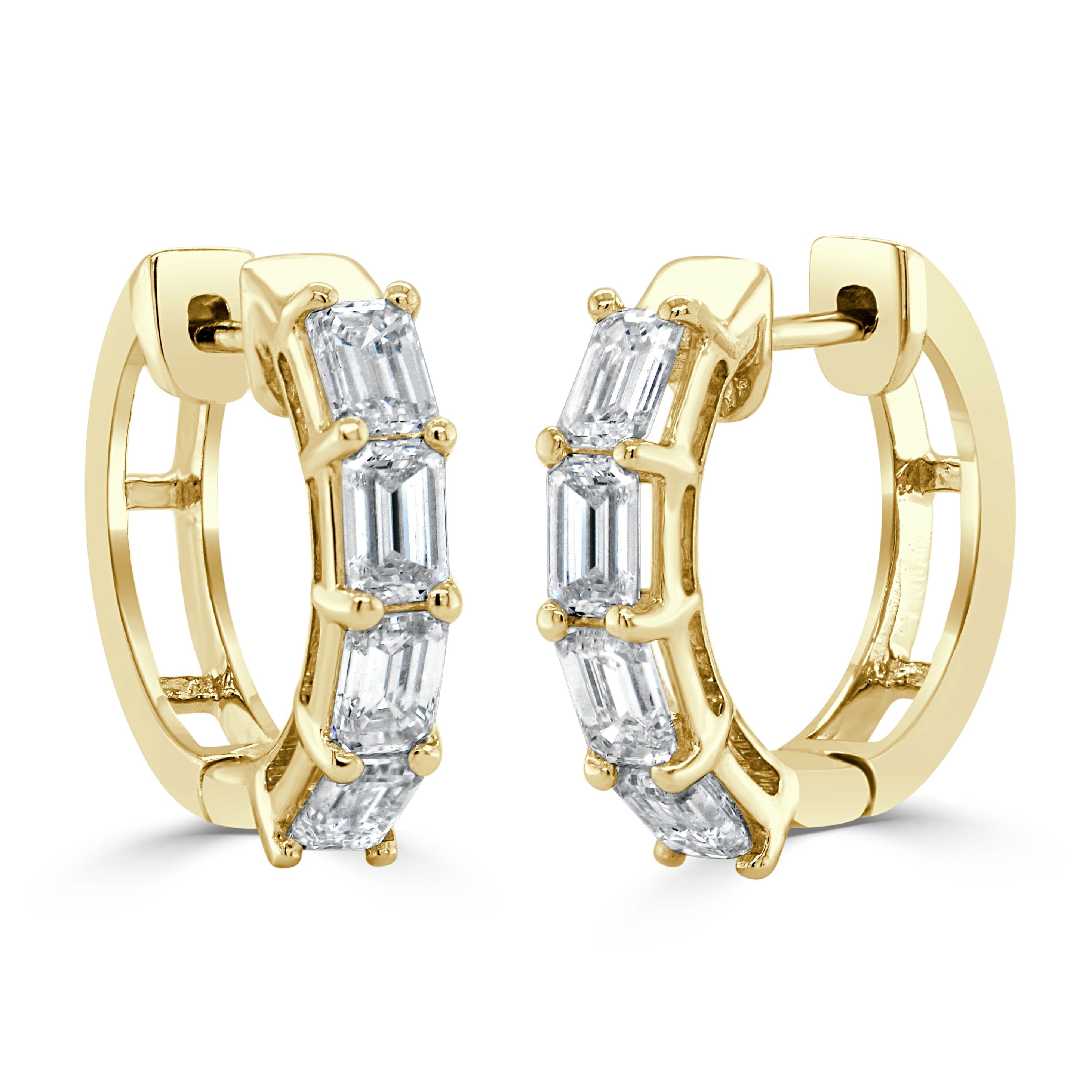 Diamond Baguette Double Trinity Huggie Earrings