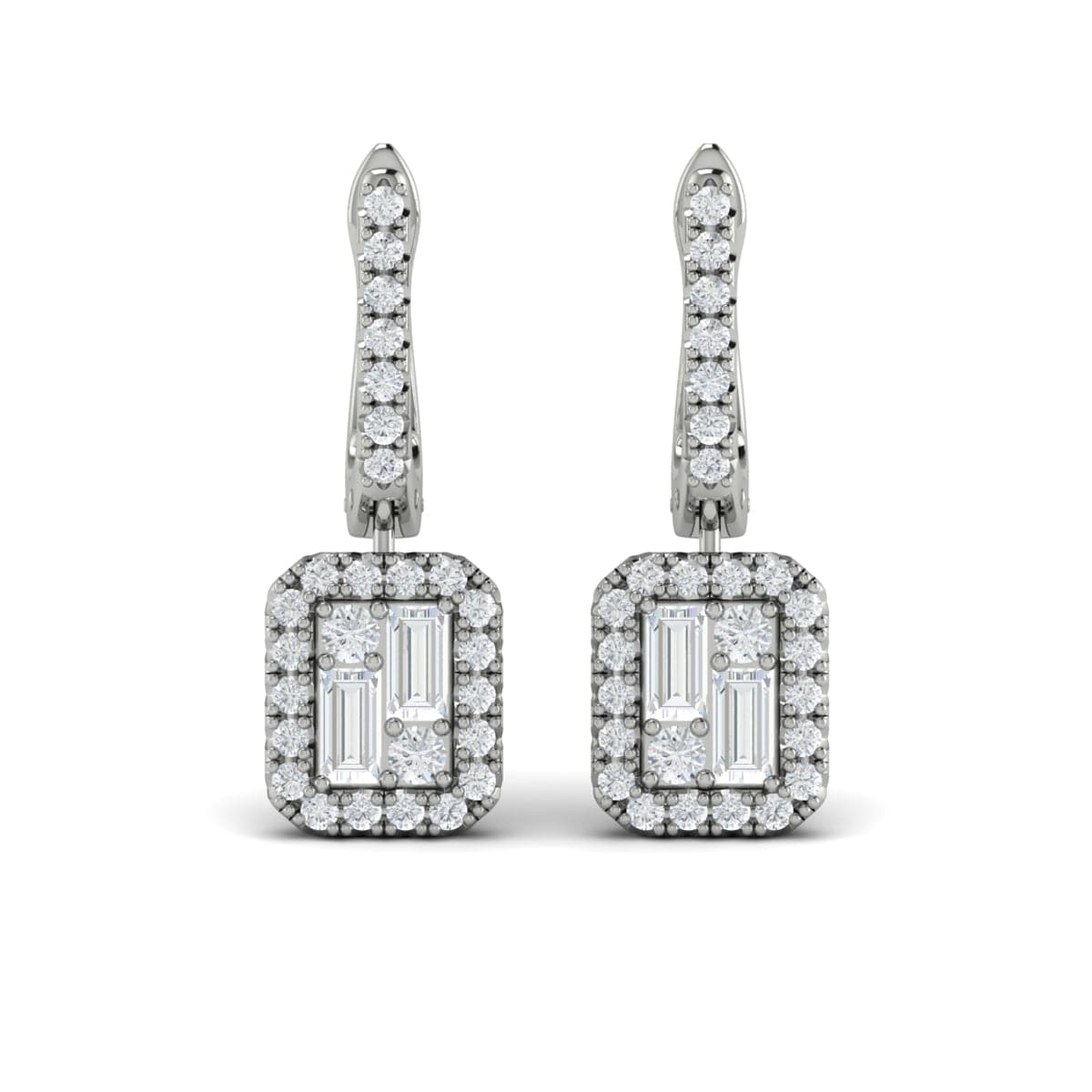 Diamond Baguette Halo Drop Huggie Earrings