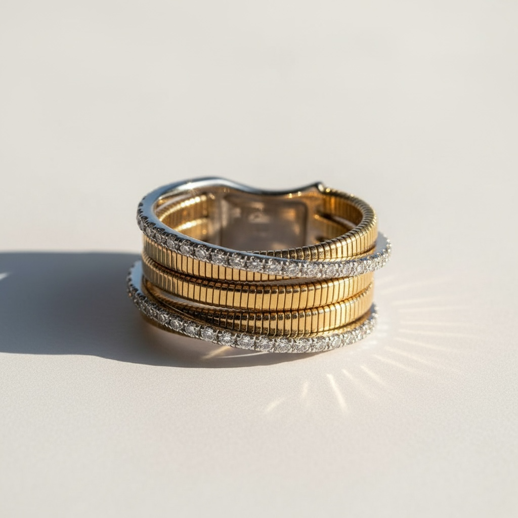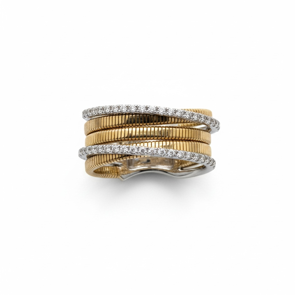 0.22 tcw Natural Diamonds and 14k Yellow Gold Multirow Overlapping Ring