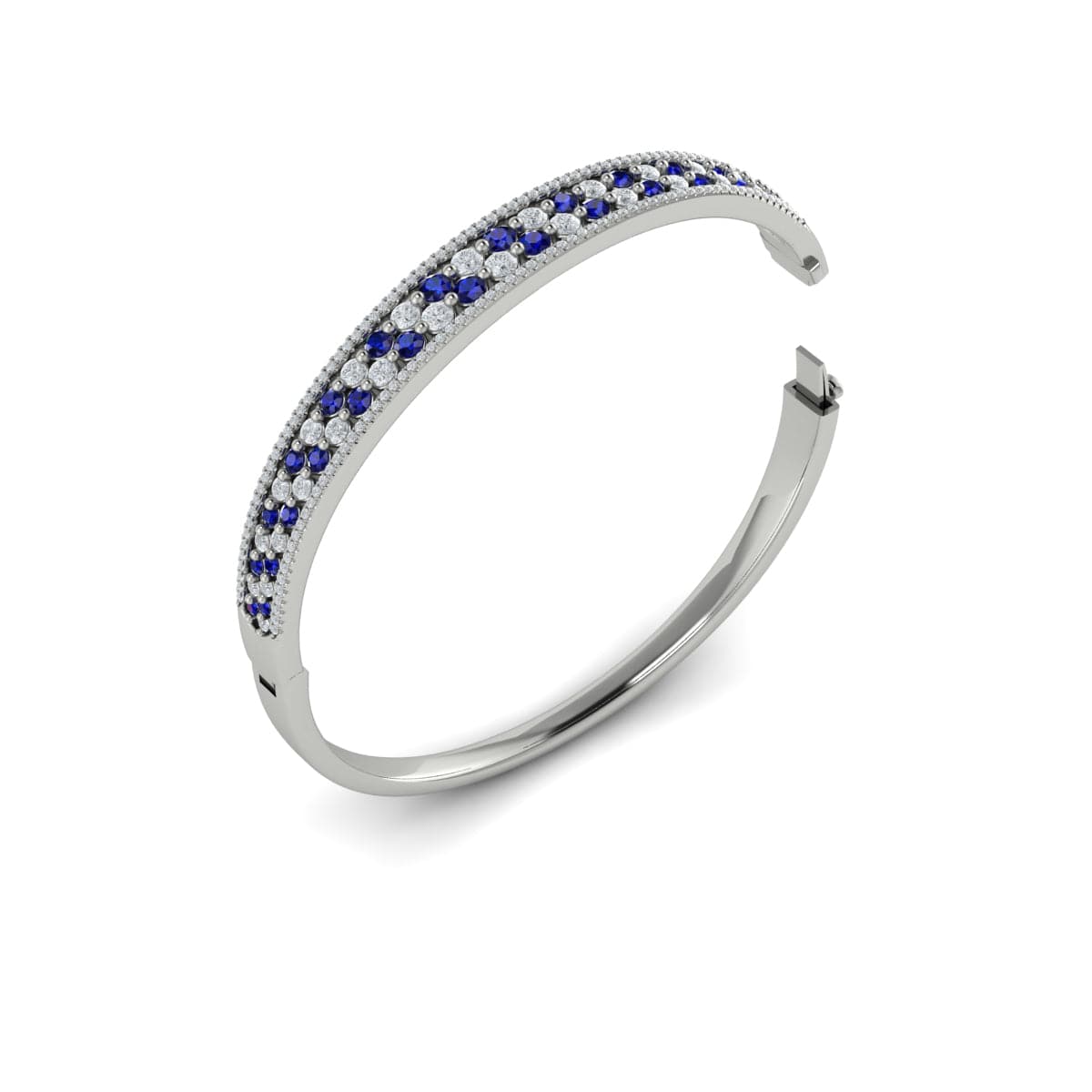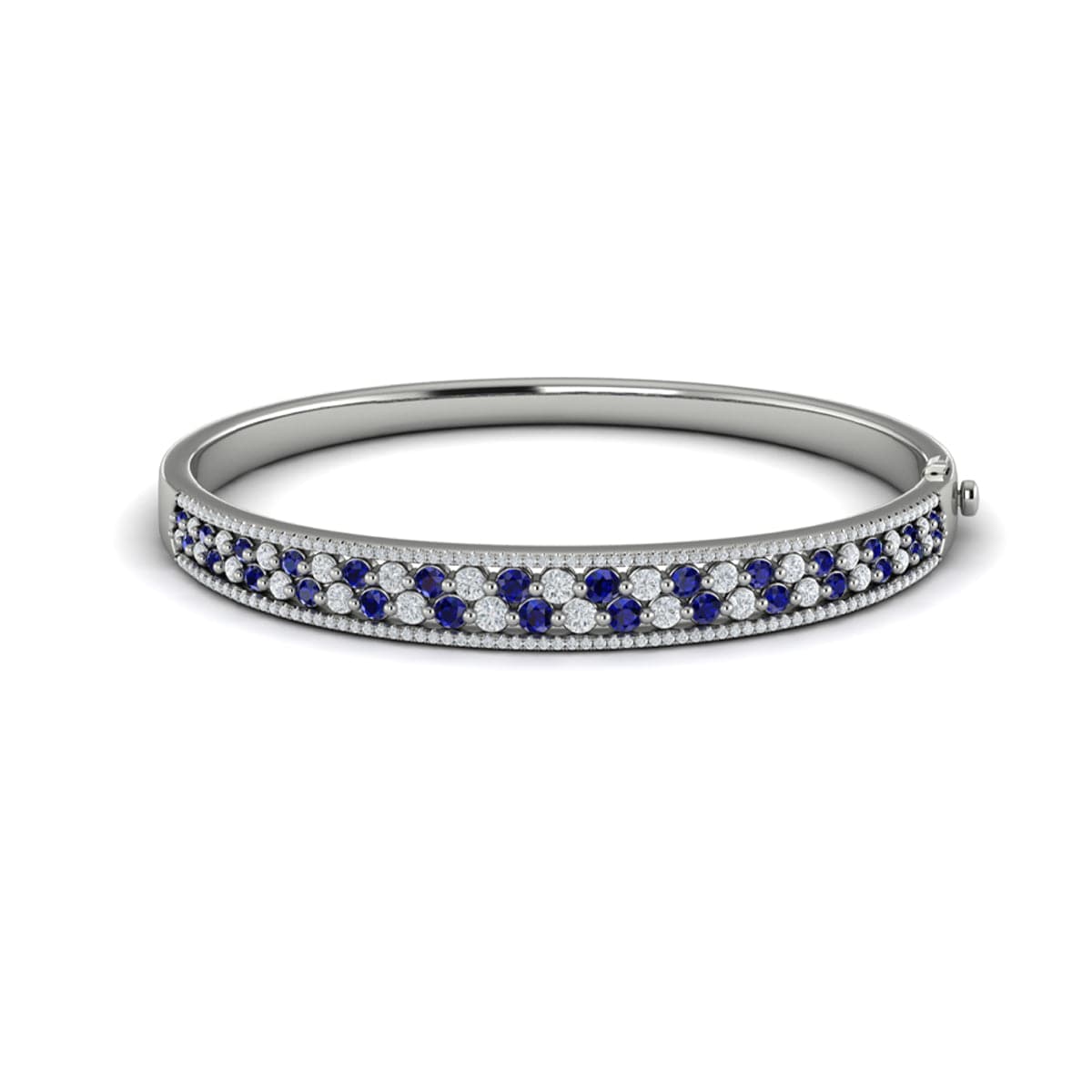 Diamond and Blue Sapphire Hinged Bangle