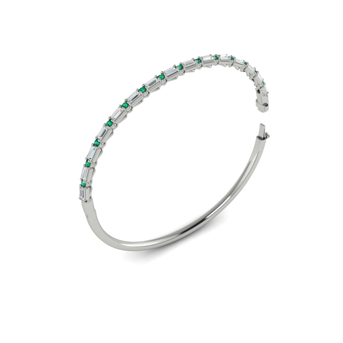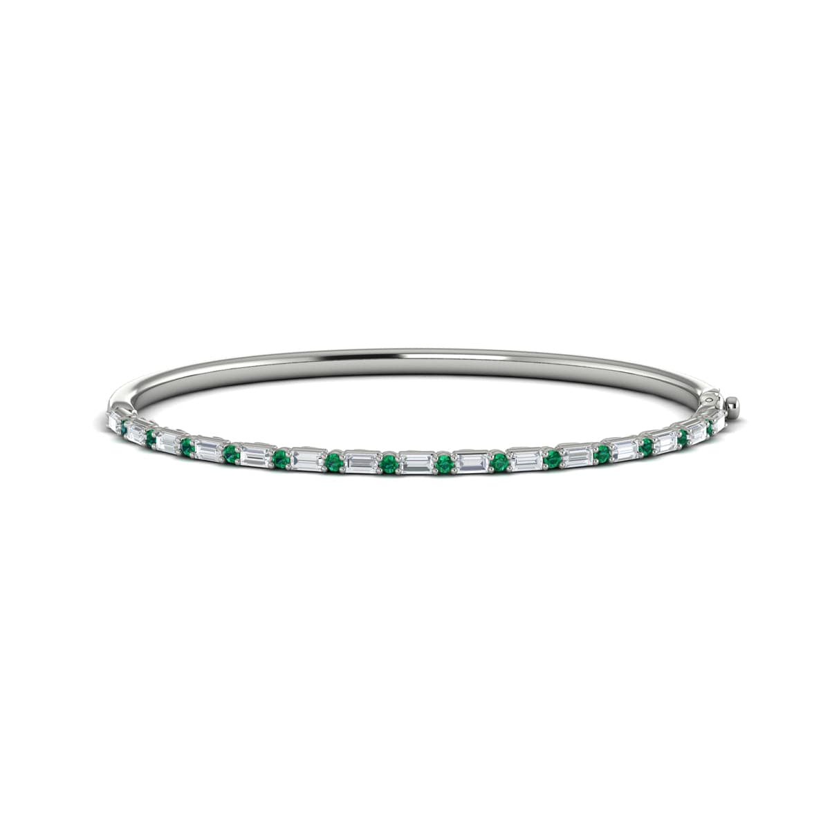 Diamond Baguette and Emerald Hinged Bangle