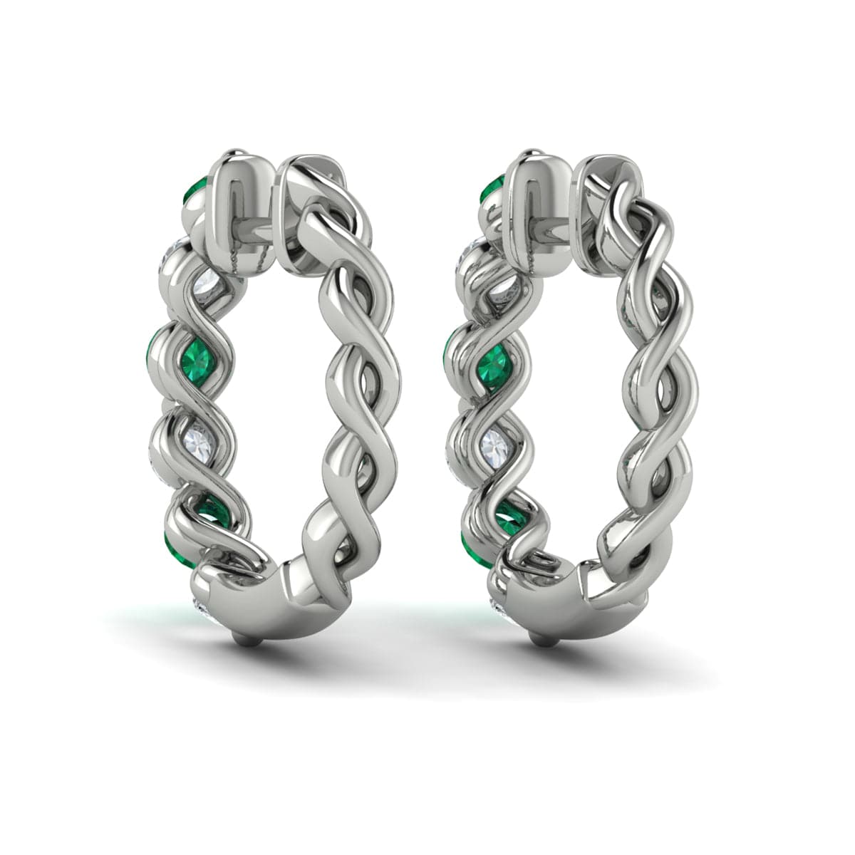 Diamond and Emerald Twist Hoop Earrings