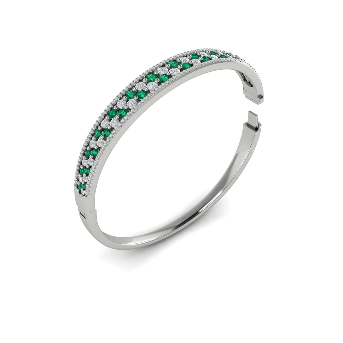 Diamond and Emerald Hinged Bangle