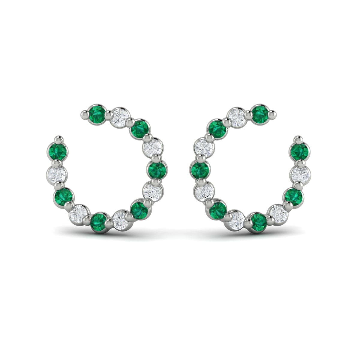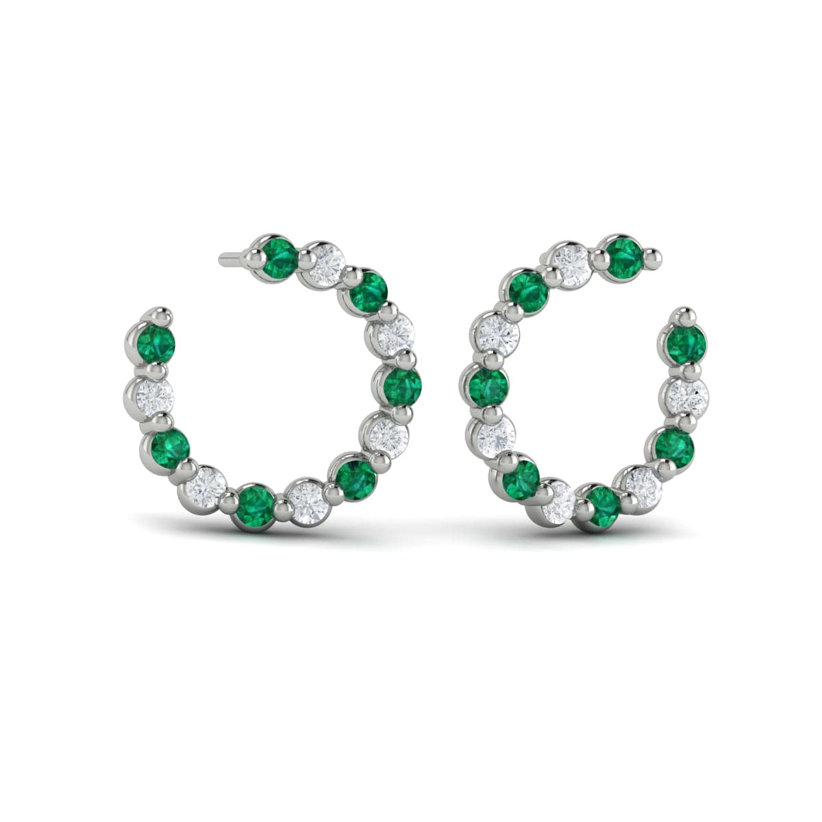 Forward-facing Diamond and Emerald Open Hoop Earrings