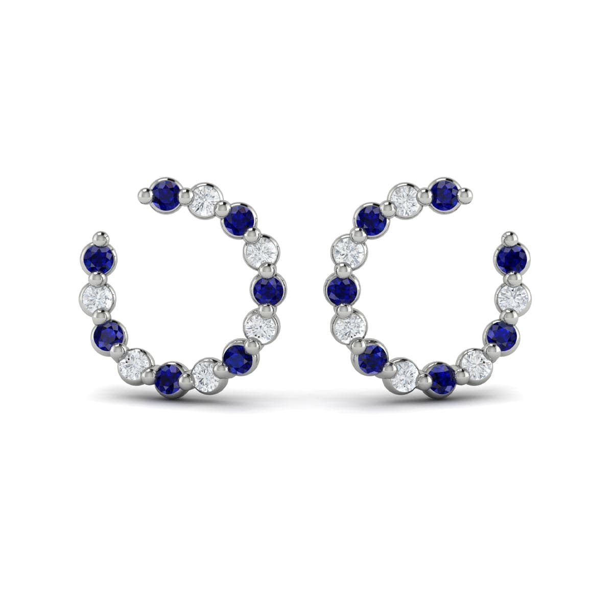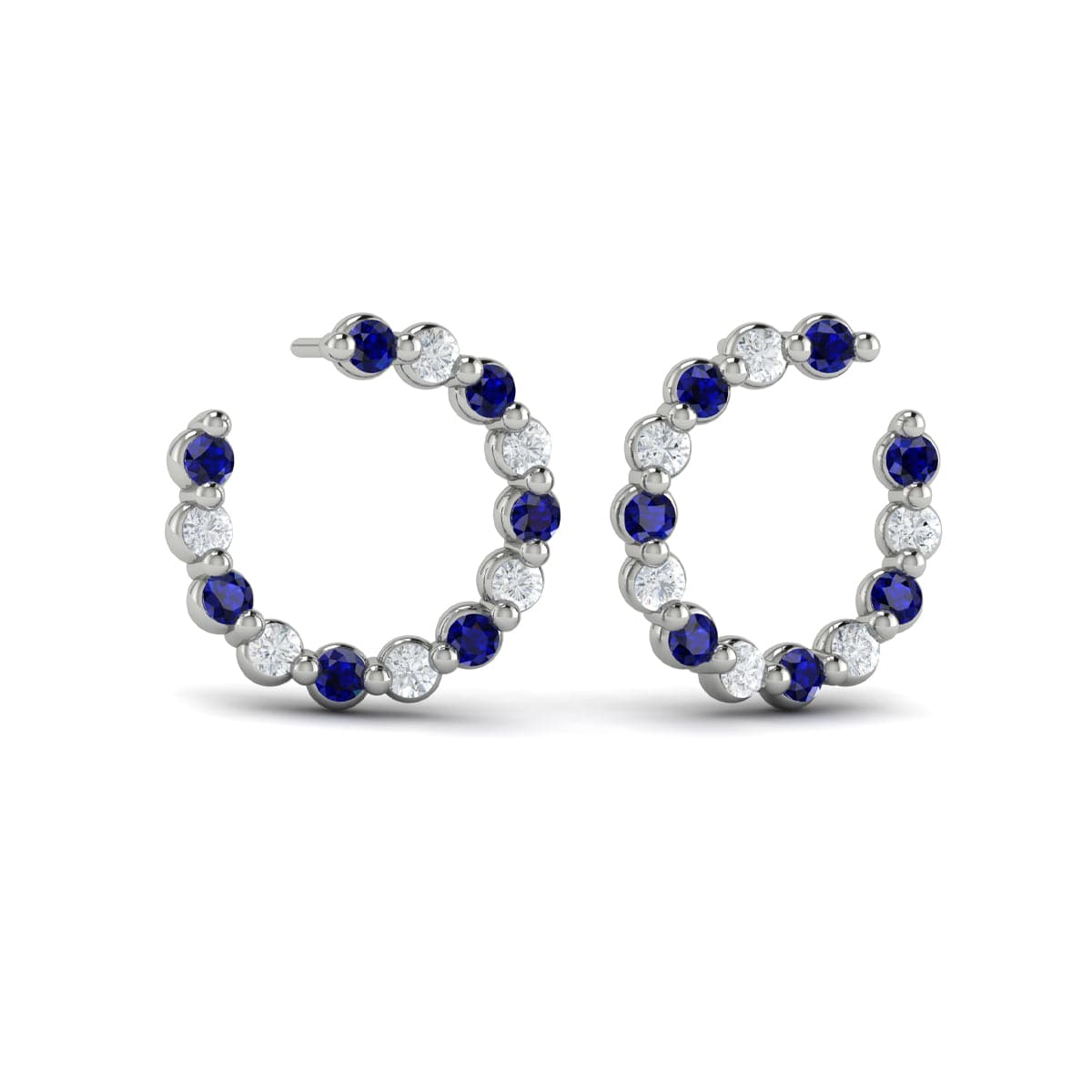 Forward-facing Diamond and Blue Sapphire Open Hoop Earrings