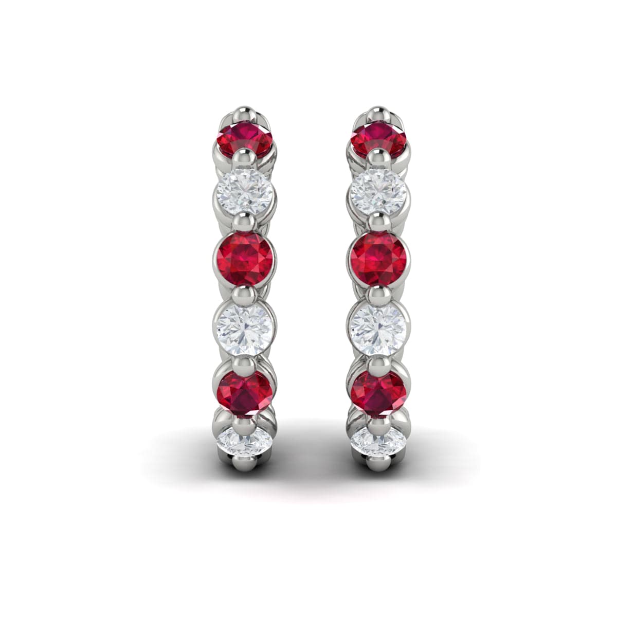 Forward-facing Diamond and Ruby Open Hoop Earrings