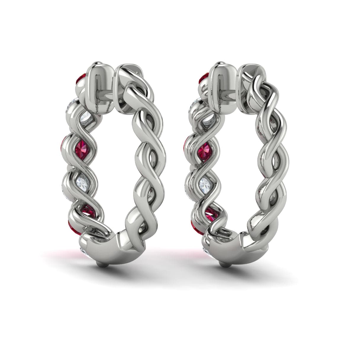 Diamond and Ruby Twist Hoop Earrings