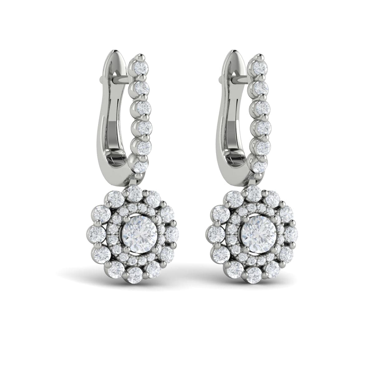 Diamond Two Row Open Circle Drop Huggie Earrings
