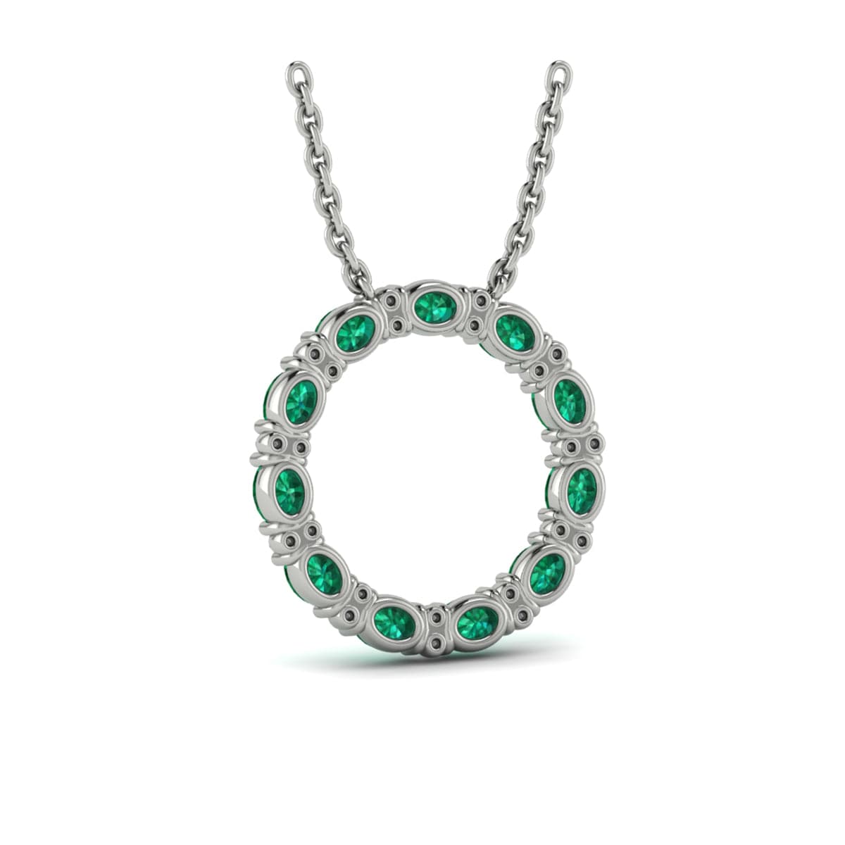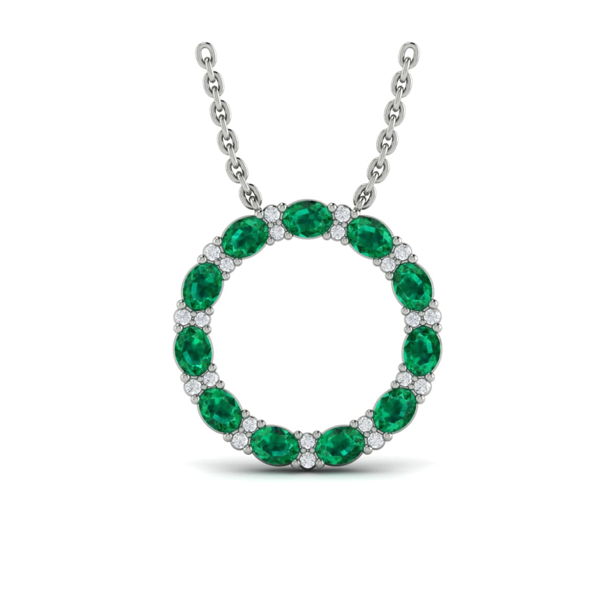 Oval Emerald and Diamond Open Circle Pendant Necklace