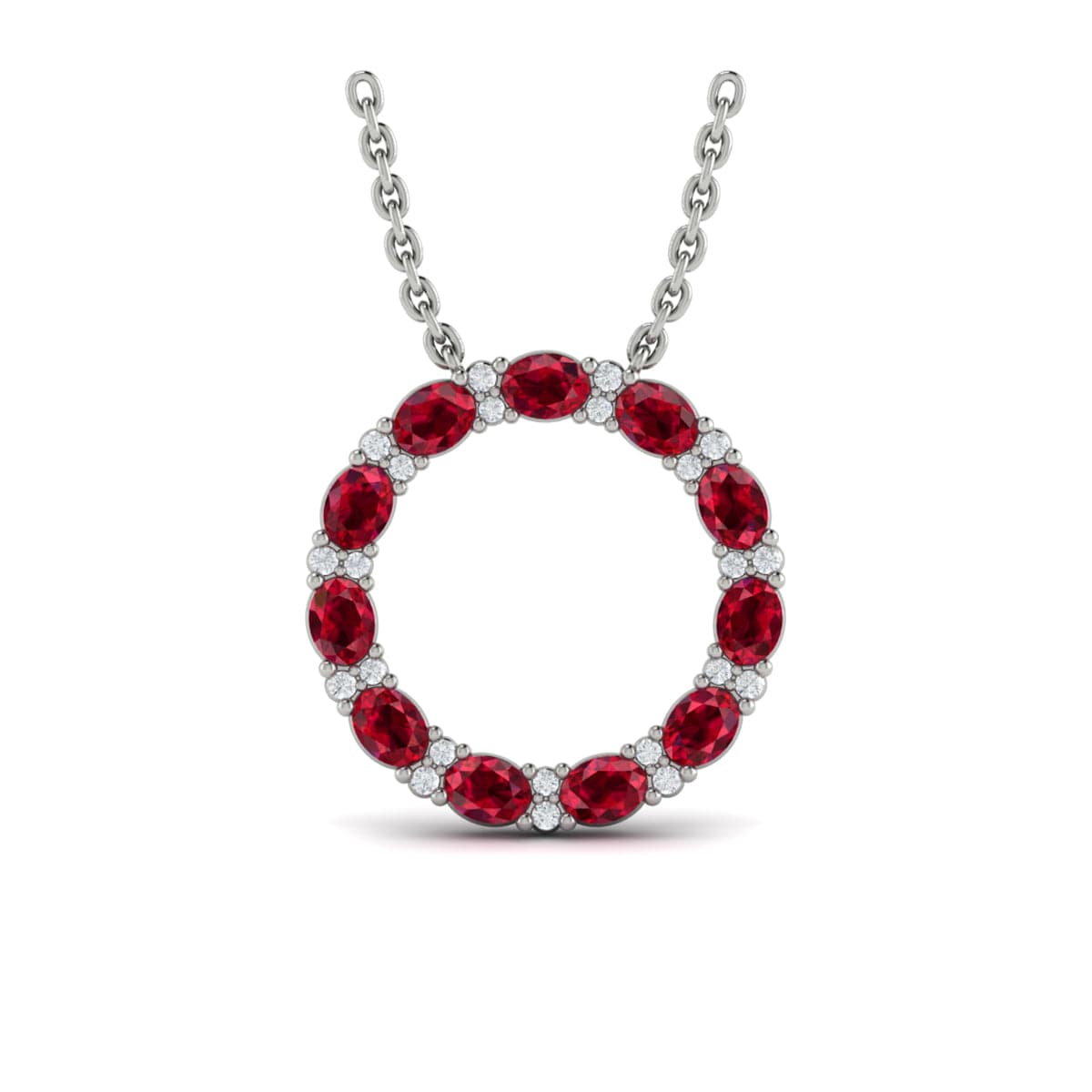 Oval Ruby and Diamond Open Circle Pendant Necklace