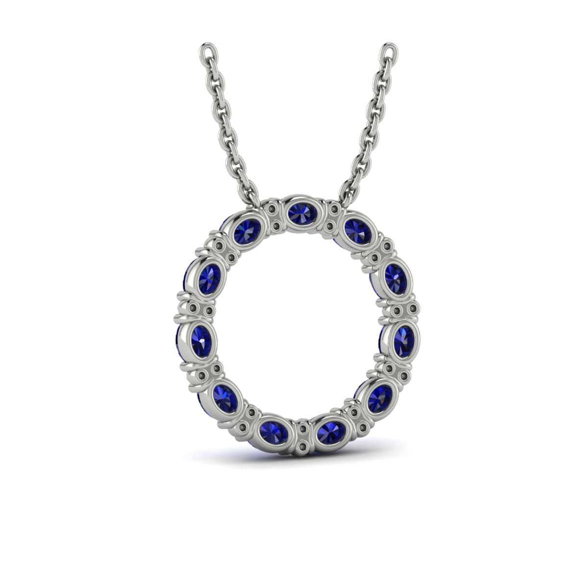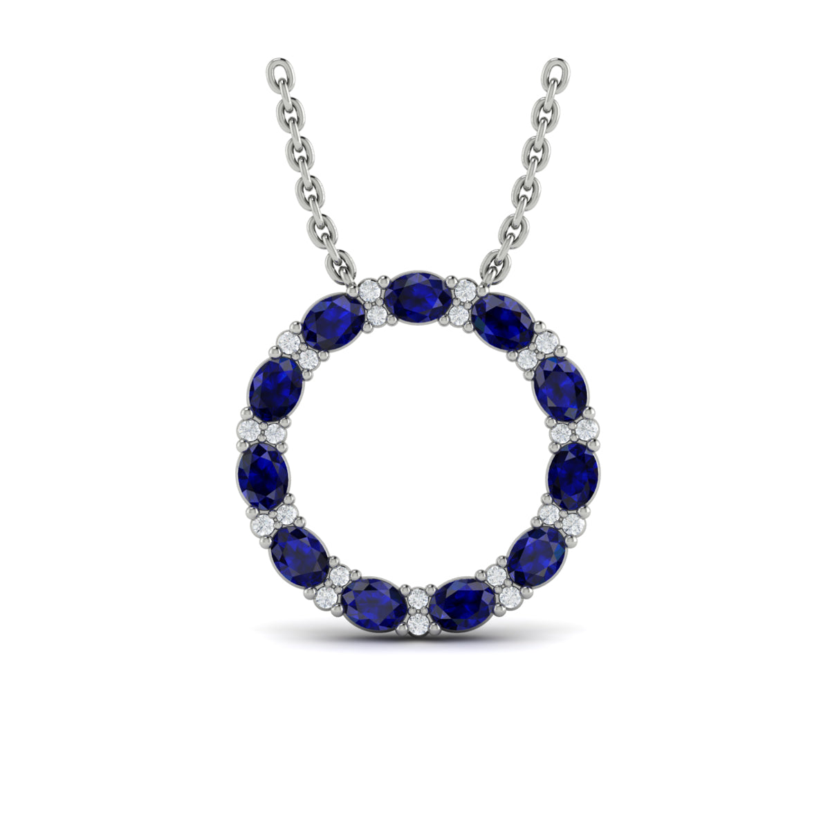 Oval Blue Sapphire and Diamond Open Circle Pendant Necklace