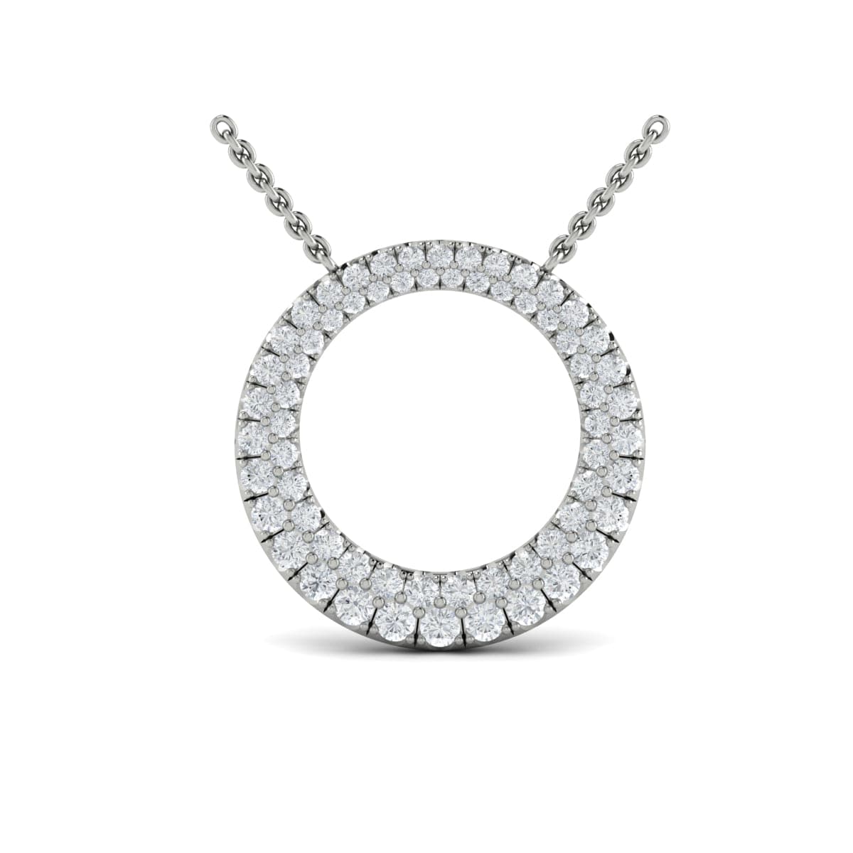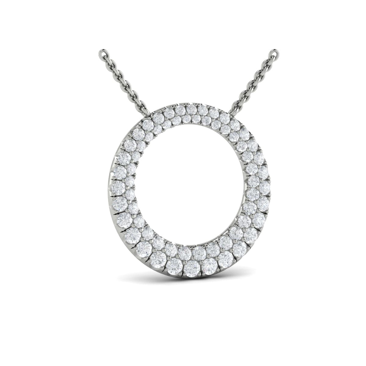 Graduated Diamond Double Row Open Circle Pendant Necklace
