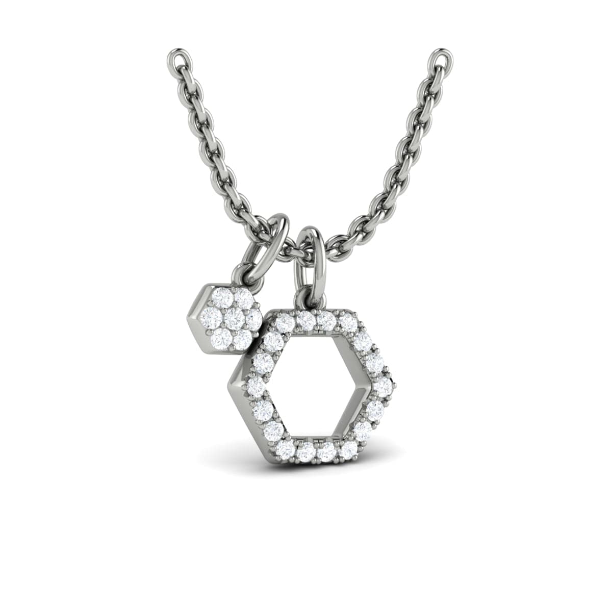 Diamond Open Honeycomb  with Mini Diamond Honeycomb Charm Pendant Necklace