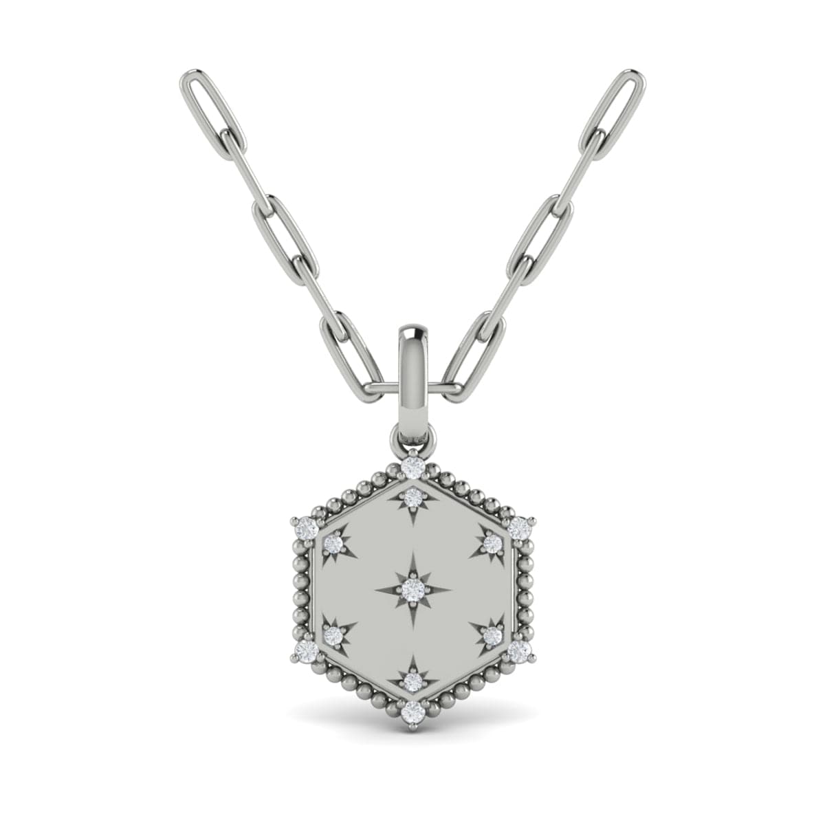 Star Diamonds and Bezel Hexagon Pendant Necklace