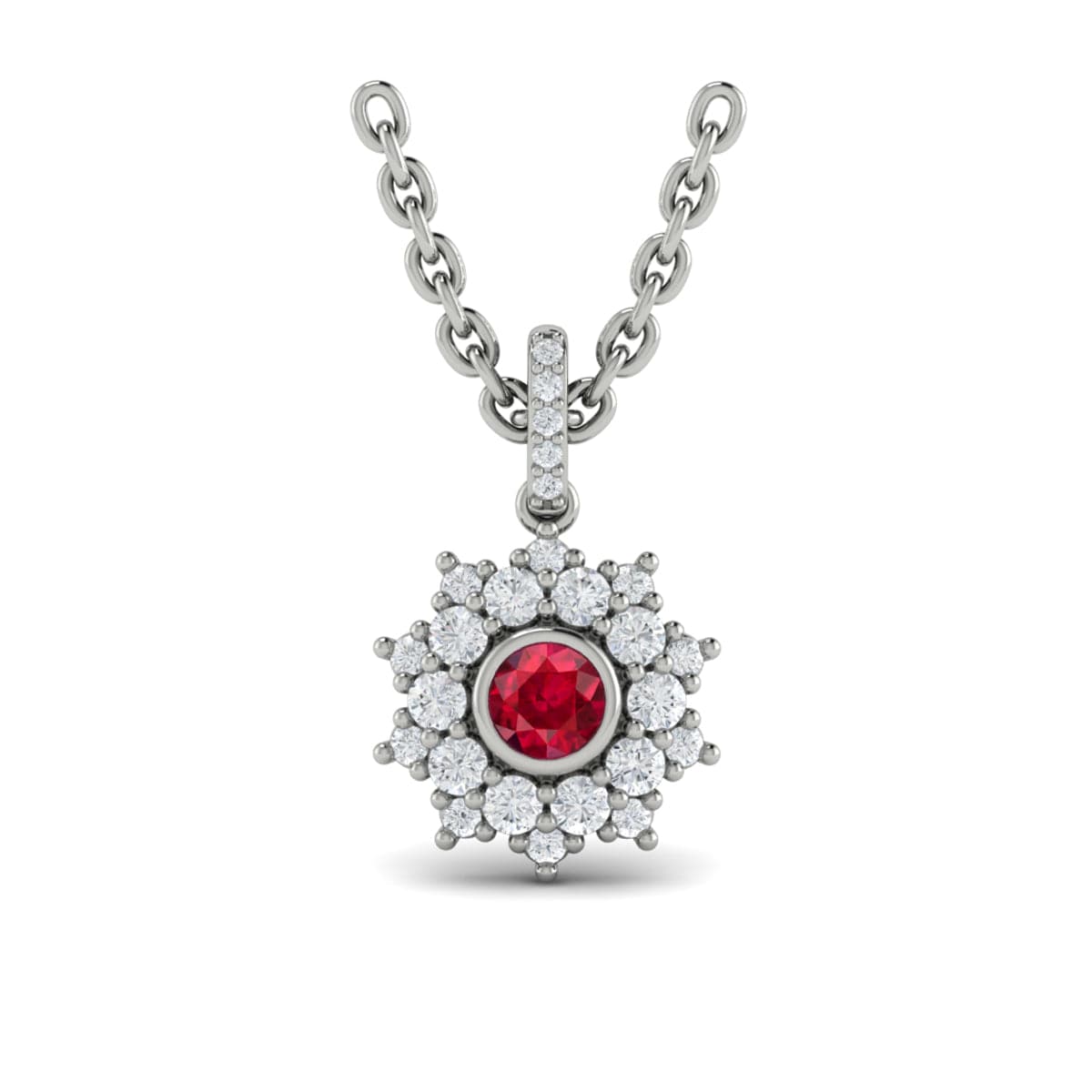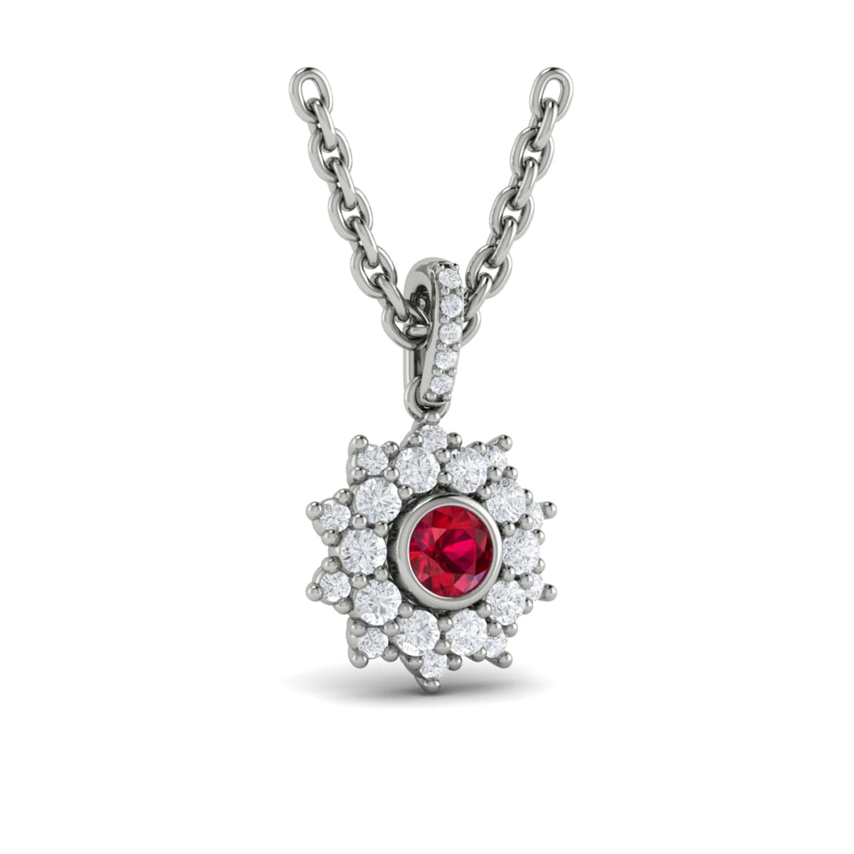 Diamond Star Cluster and Ruby Pendant Necklace