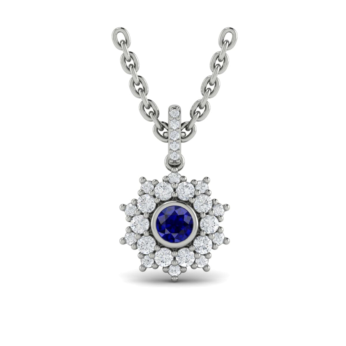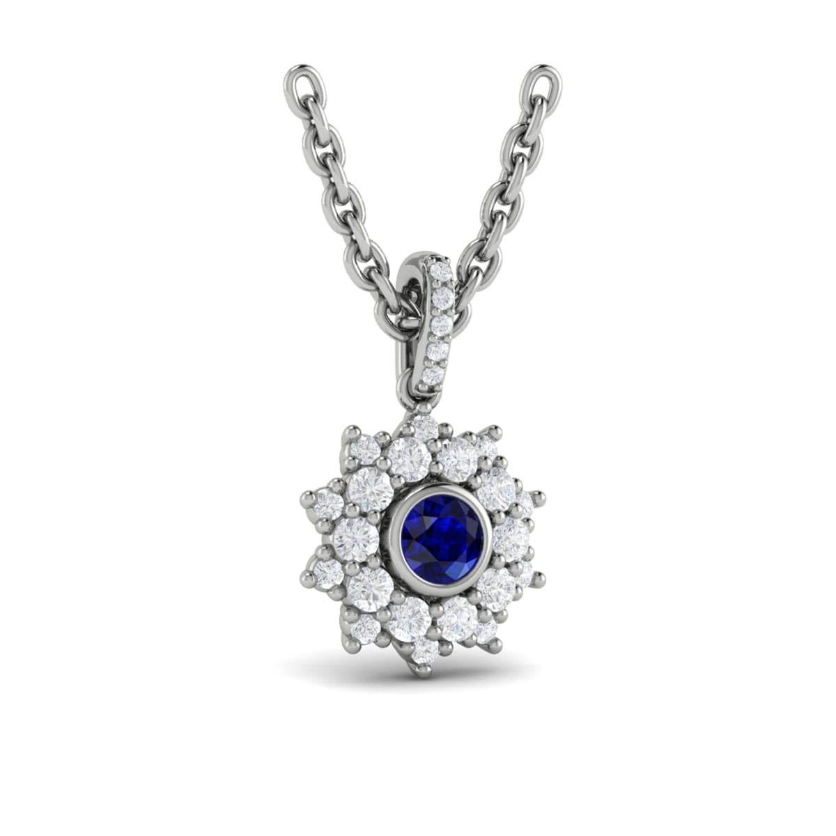 Diamond Star Cluster and Blue Sapphire Pendant Necklace