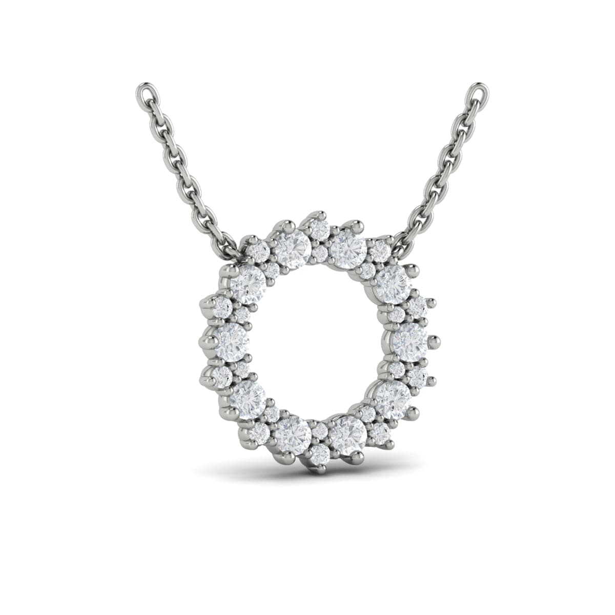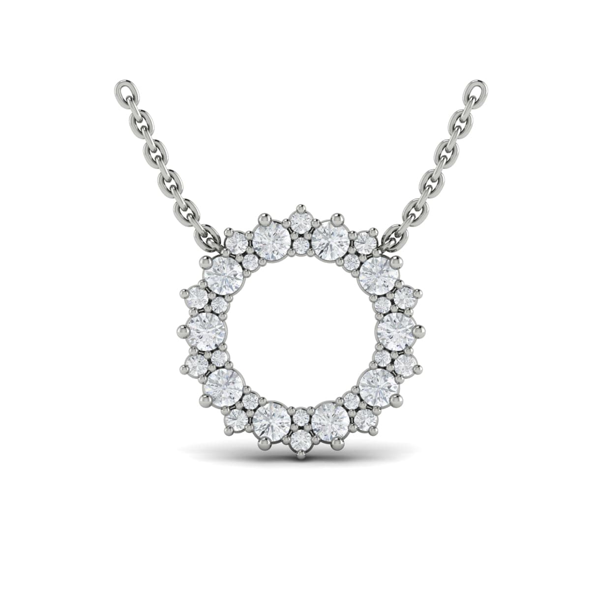 Diamond Open Starburst Circle Pendant Necklace