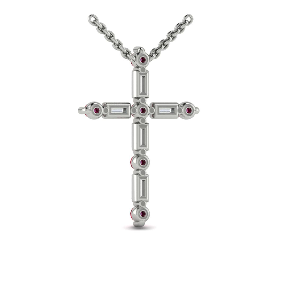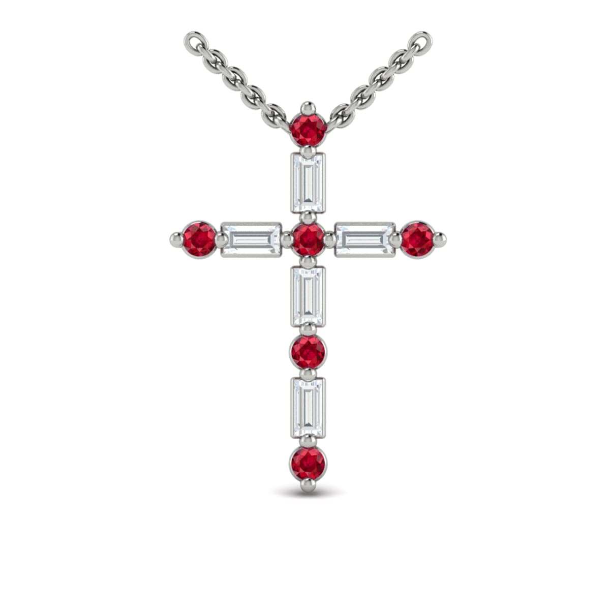 Diamond Baguette and Ruby Cross Pendant Necklace