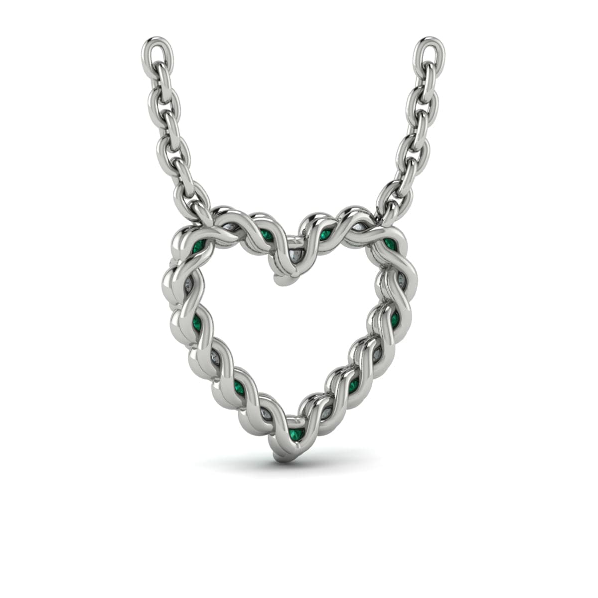 Diamond and Emerald  Open Heart Pendant Link Necklace