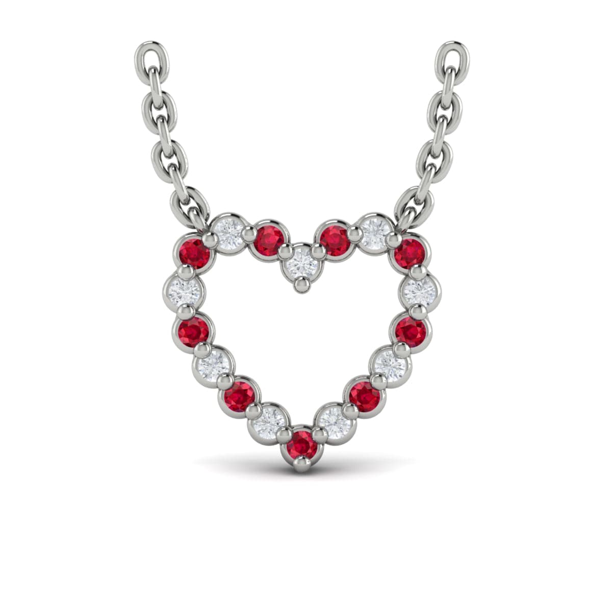 Diamond and Ruby  Open Heart Pendant Link Necklace