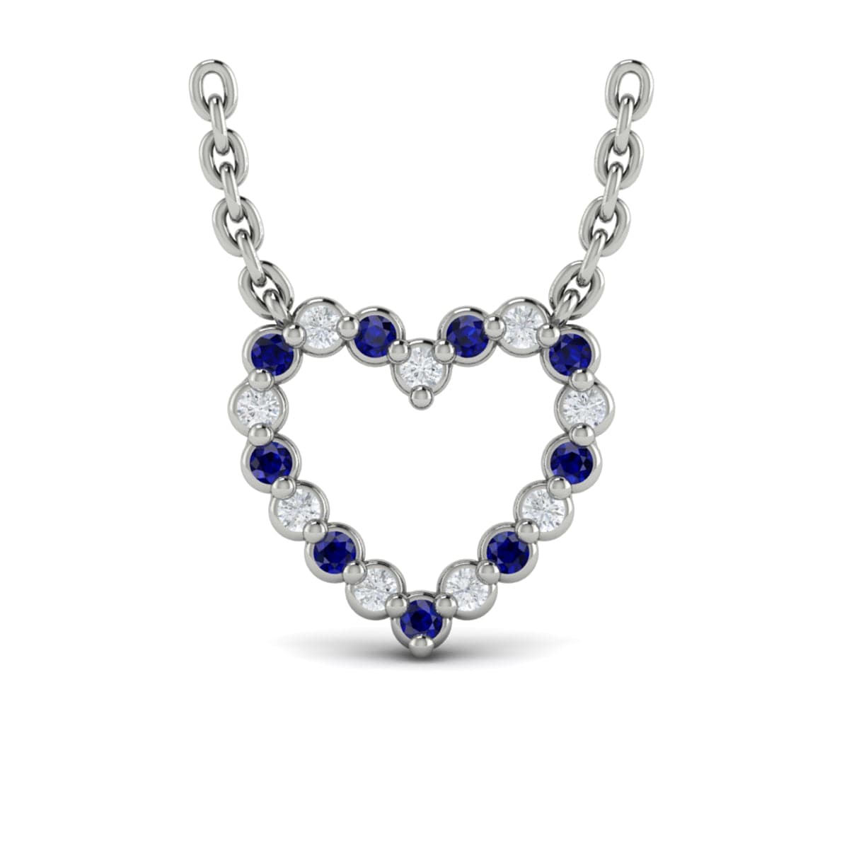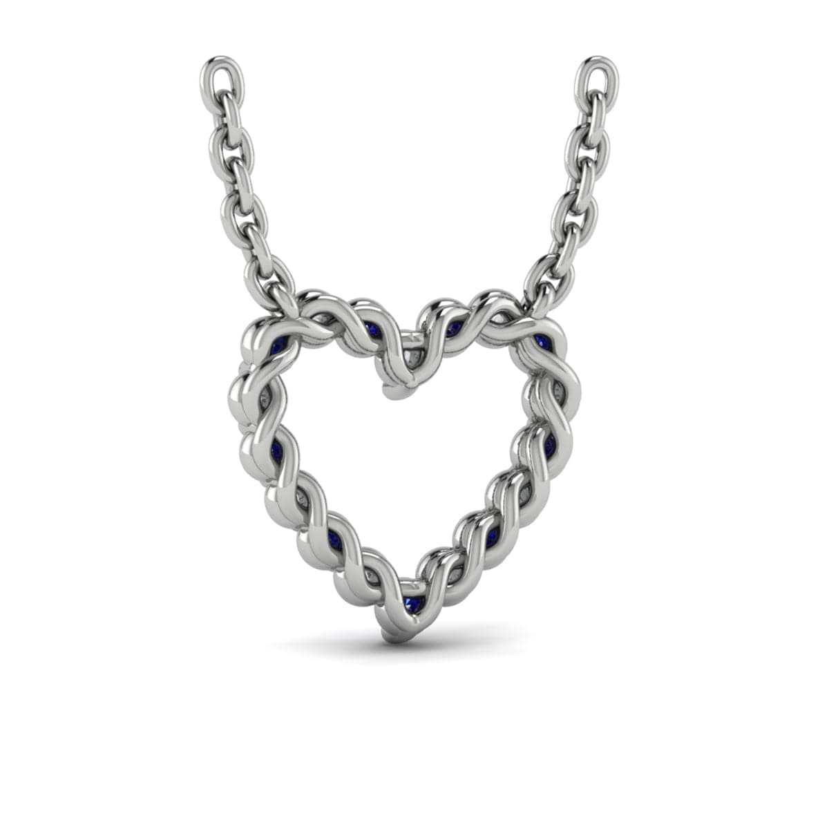 Diamond and Blue Sapphire  Open Heart Pendant Link Necklace