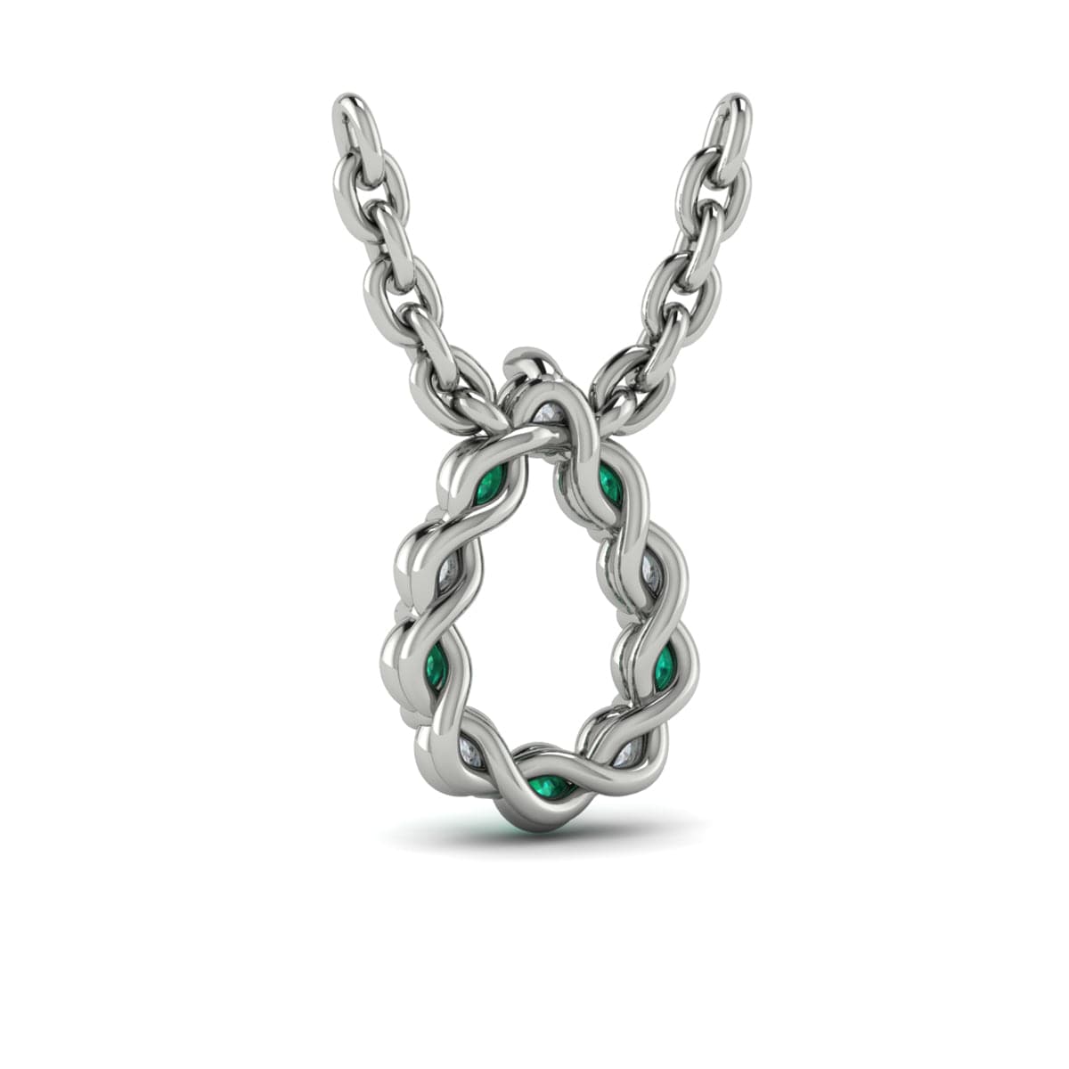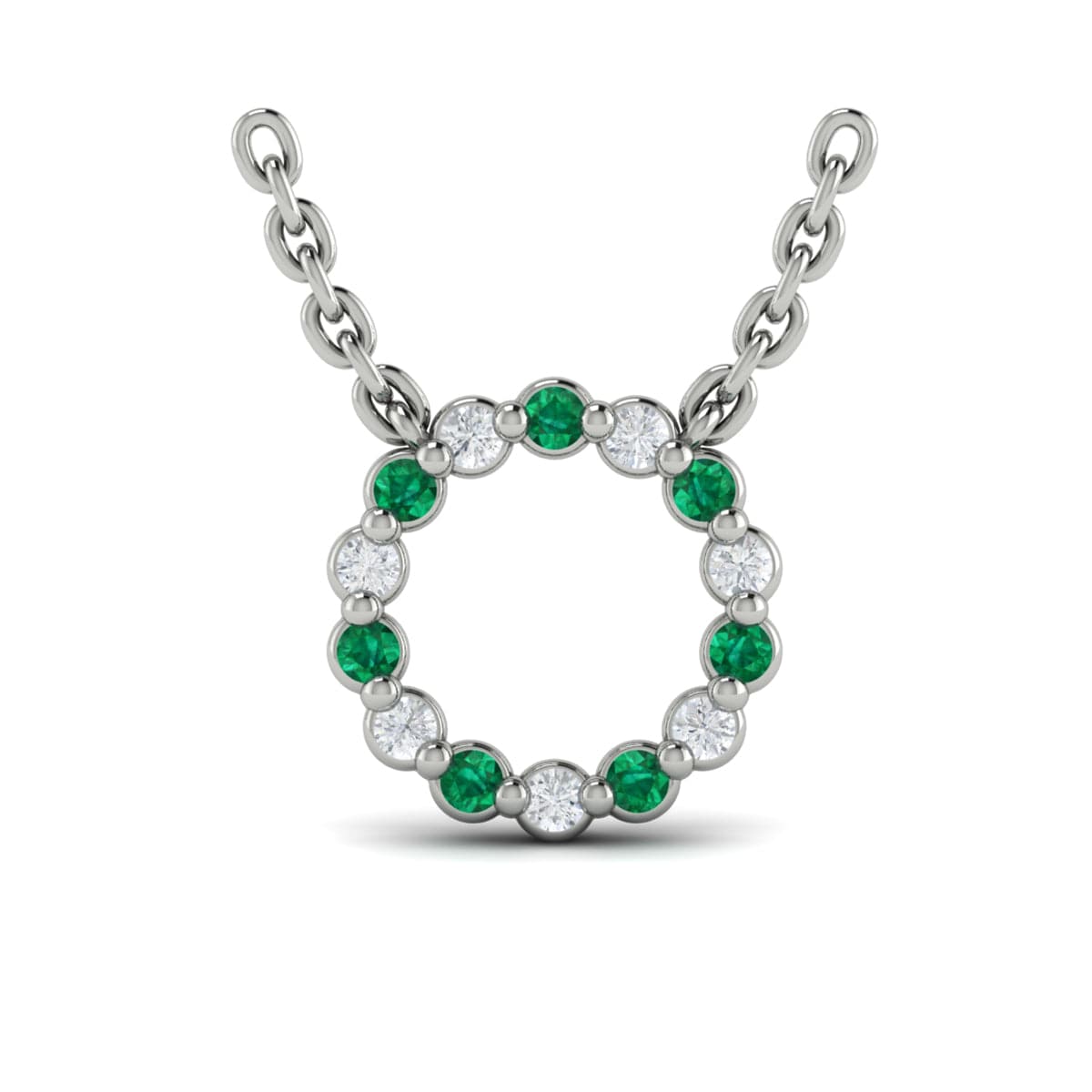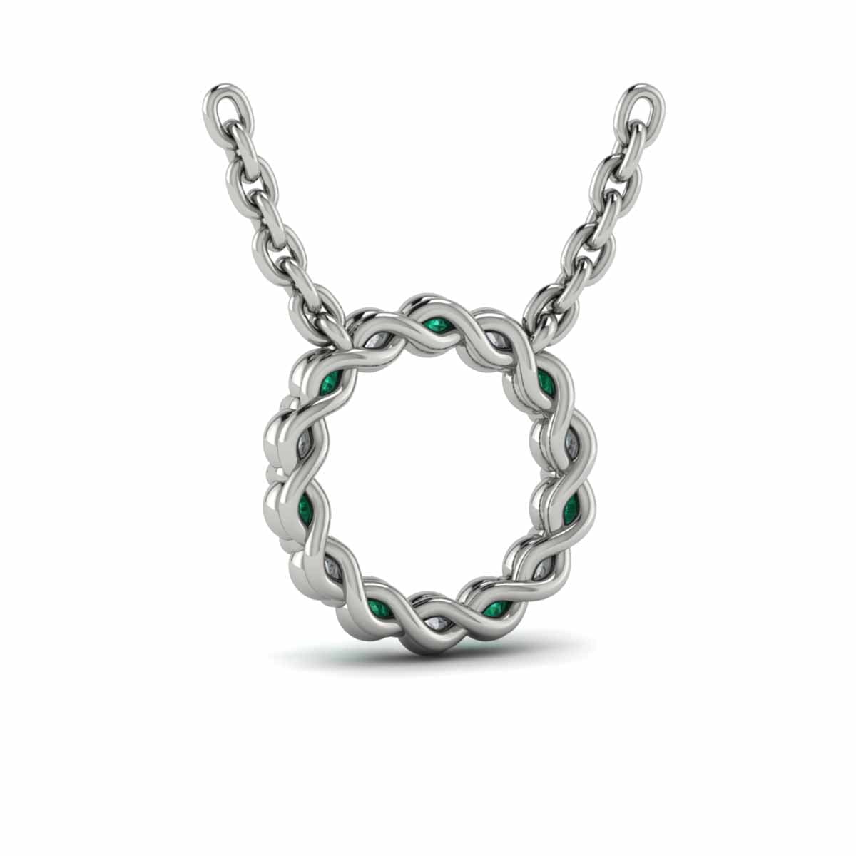 Diamond and Emerald  Open Circle Pendant Link Necklace