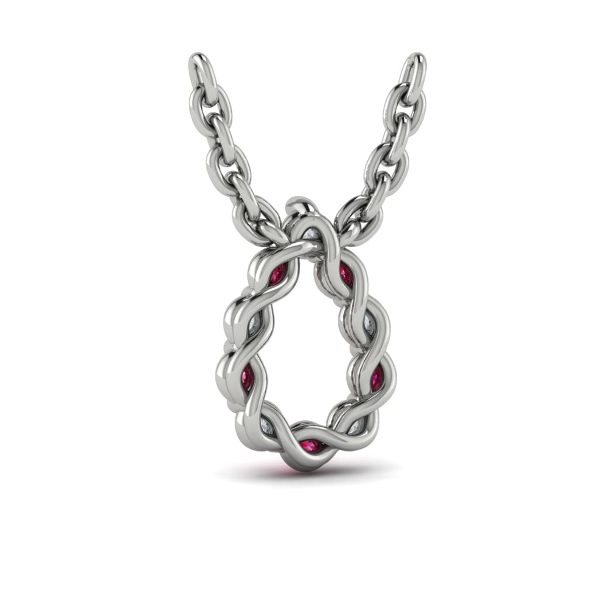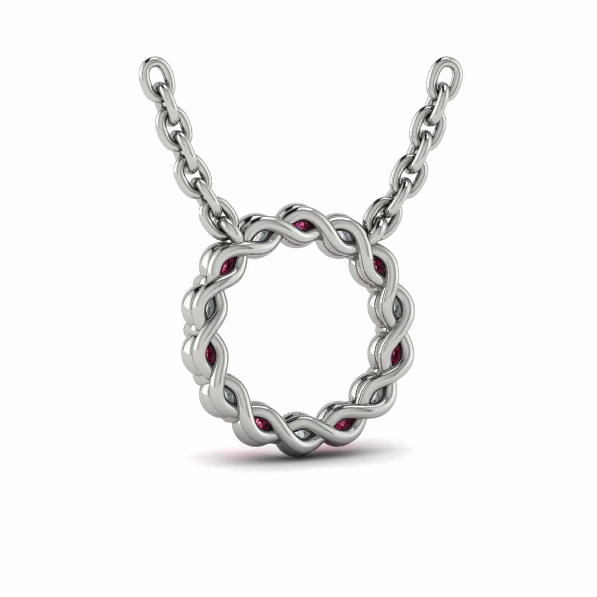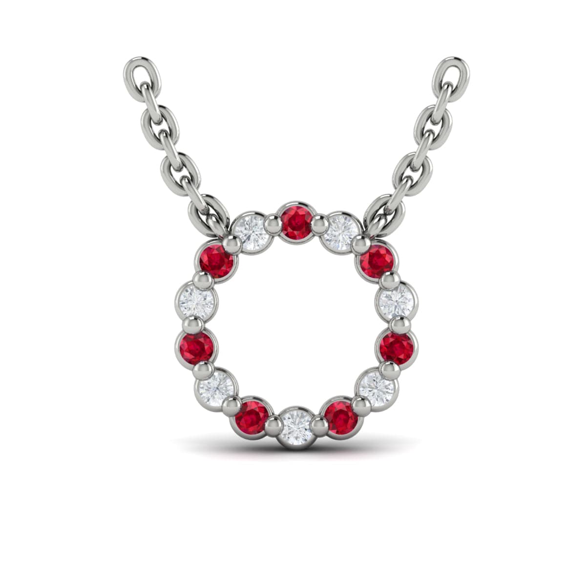 Diamond and Ruby  Open Circle Pendant Link Necklace