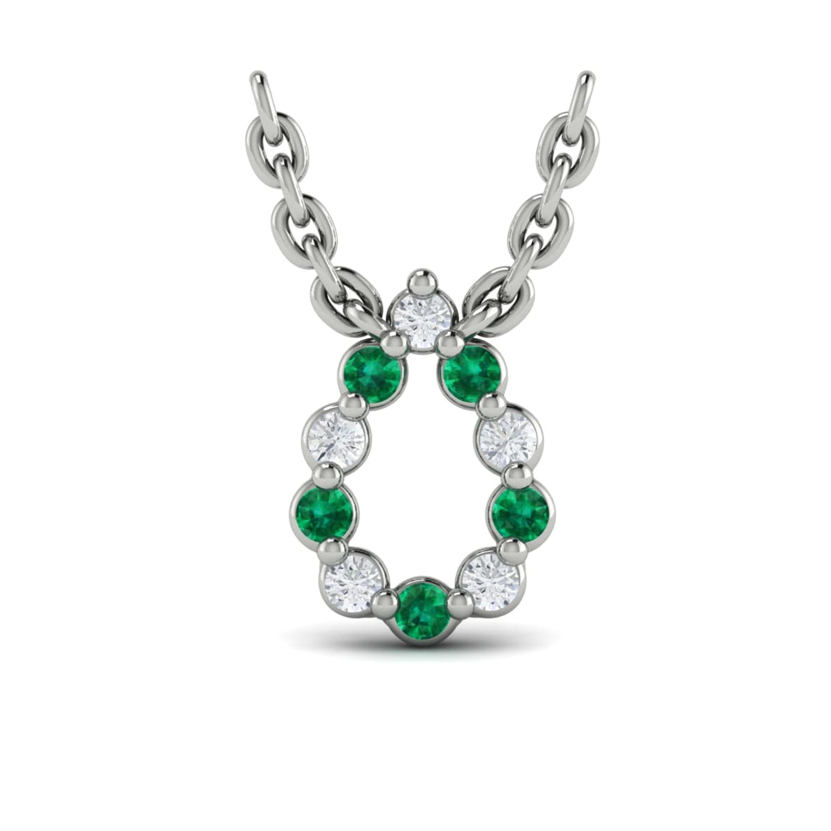 Diamond and Emerald  Open Teardrop Pendant Link Necklace