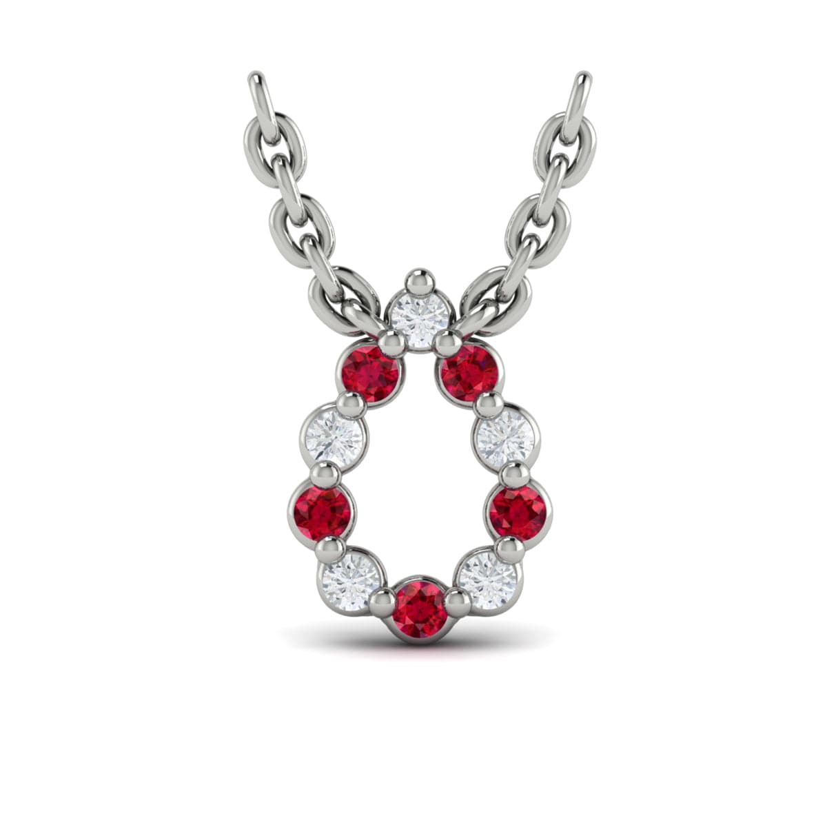 Diamond and Ruby  Open Teardrop Pendant Link Necklace
