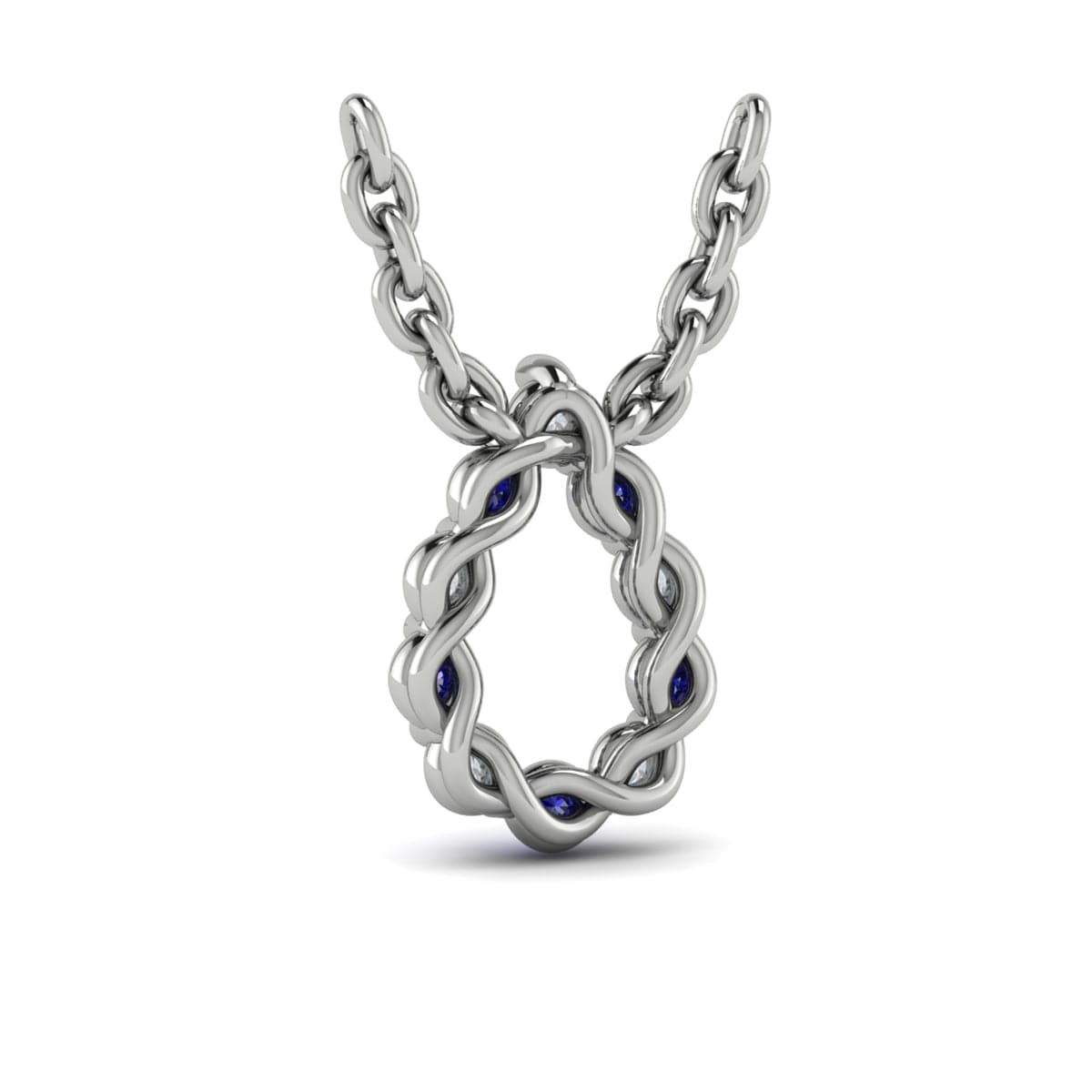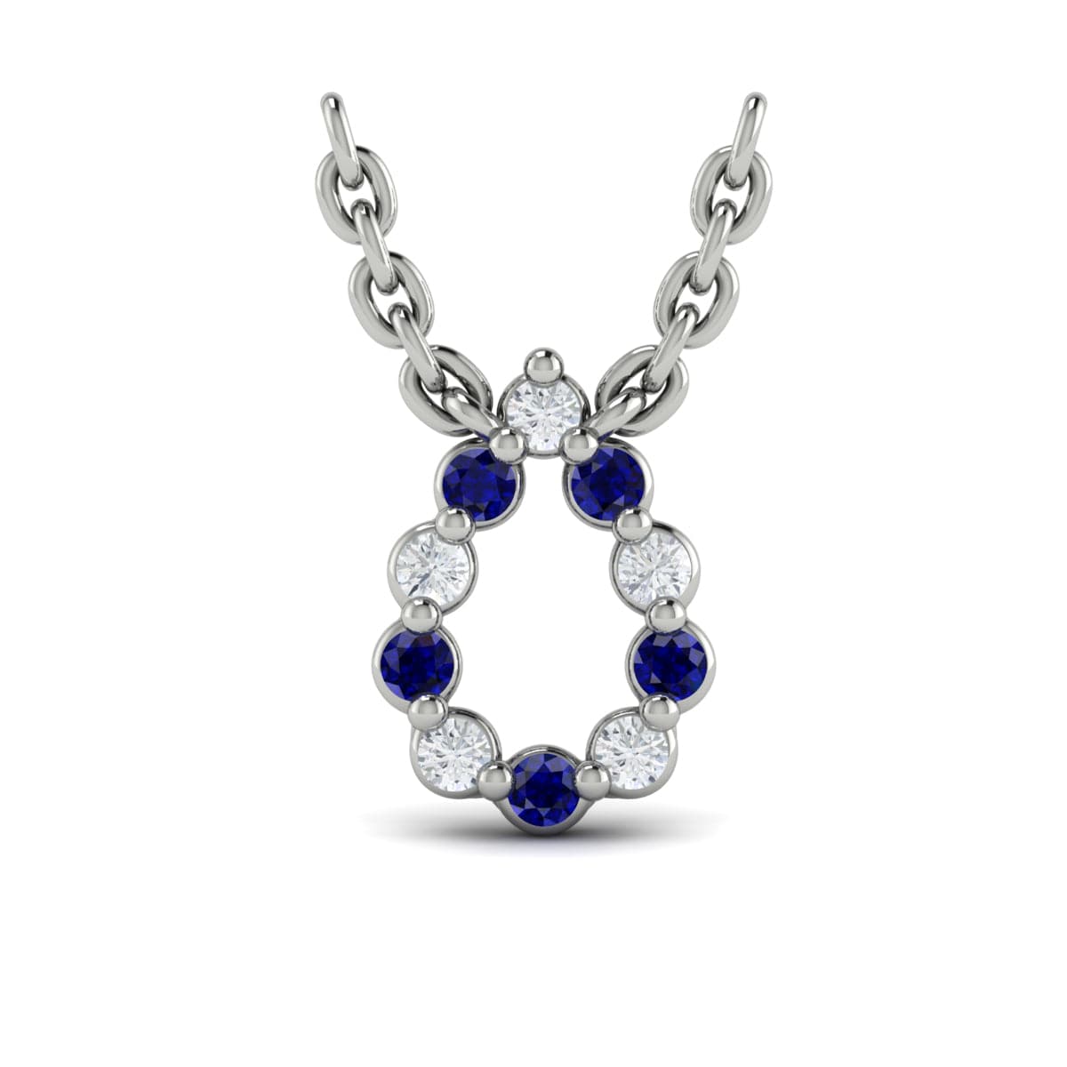 Diamond and Blue Sapphire  Open Teardrop Pendant Link Necklace