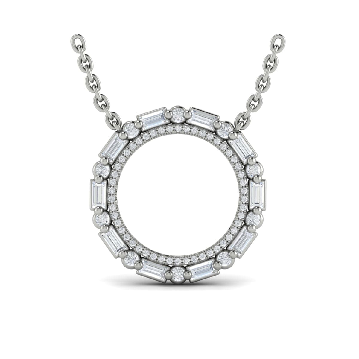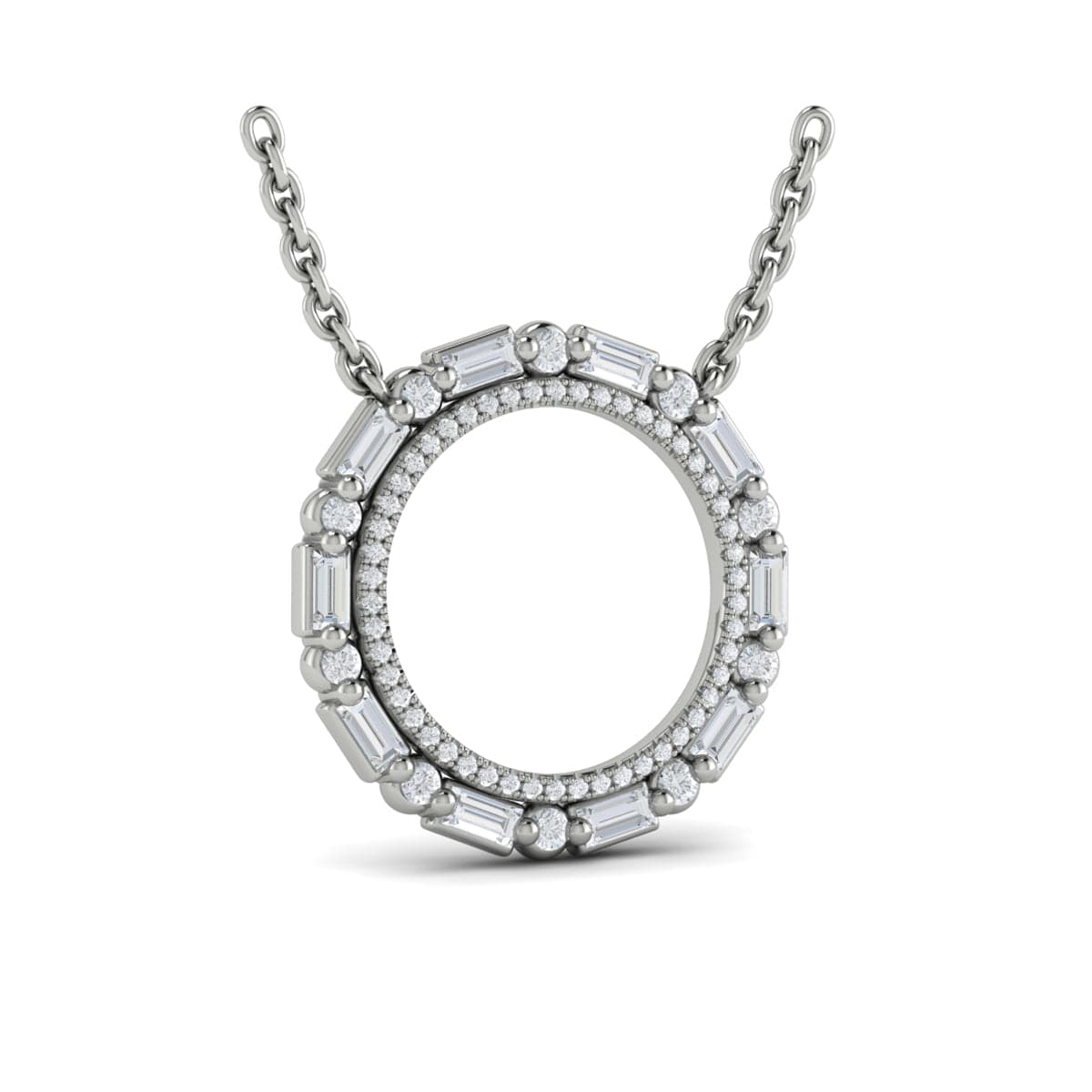 Diamond Baguette Double Open Circle Pendant Necklace