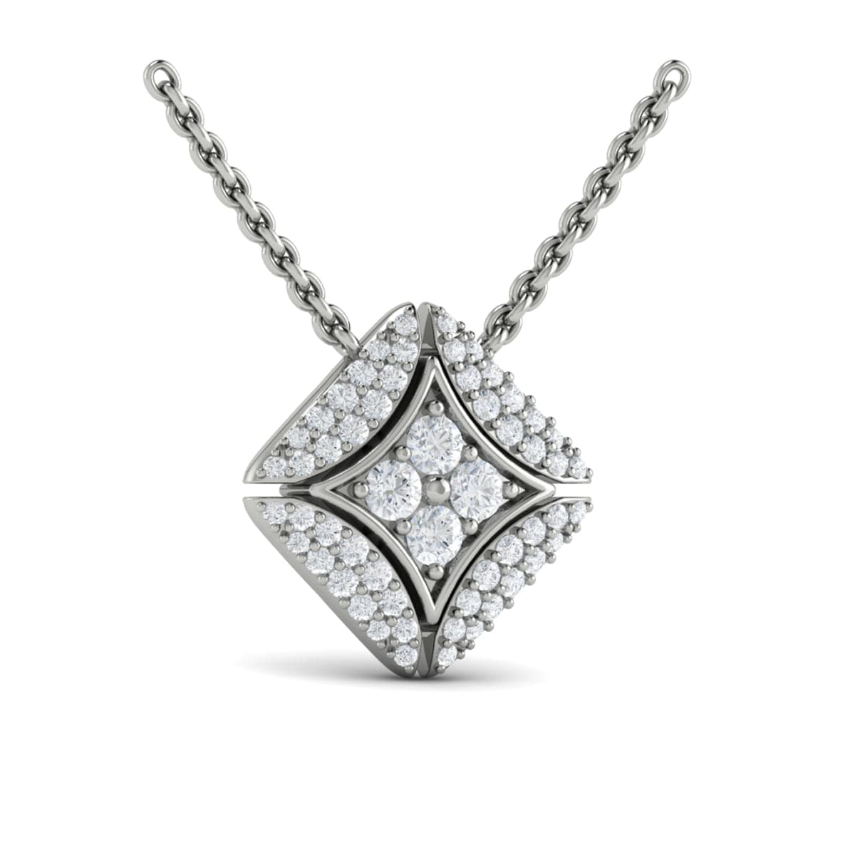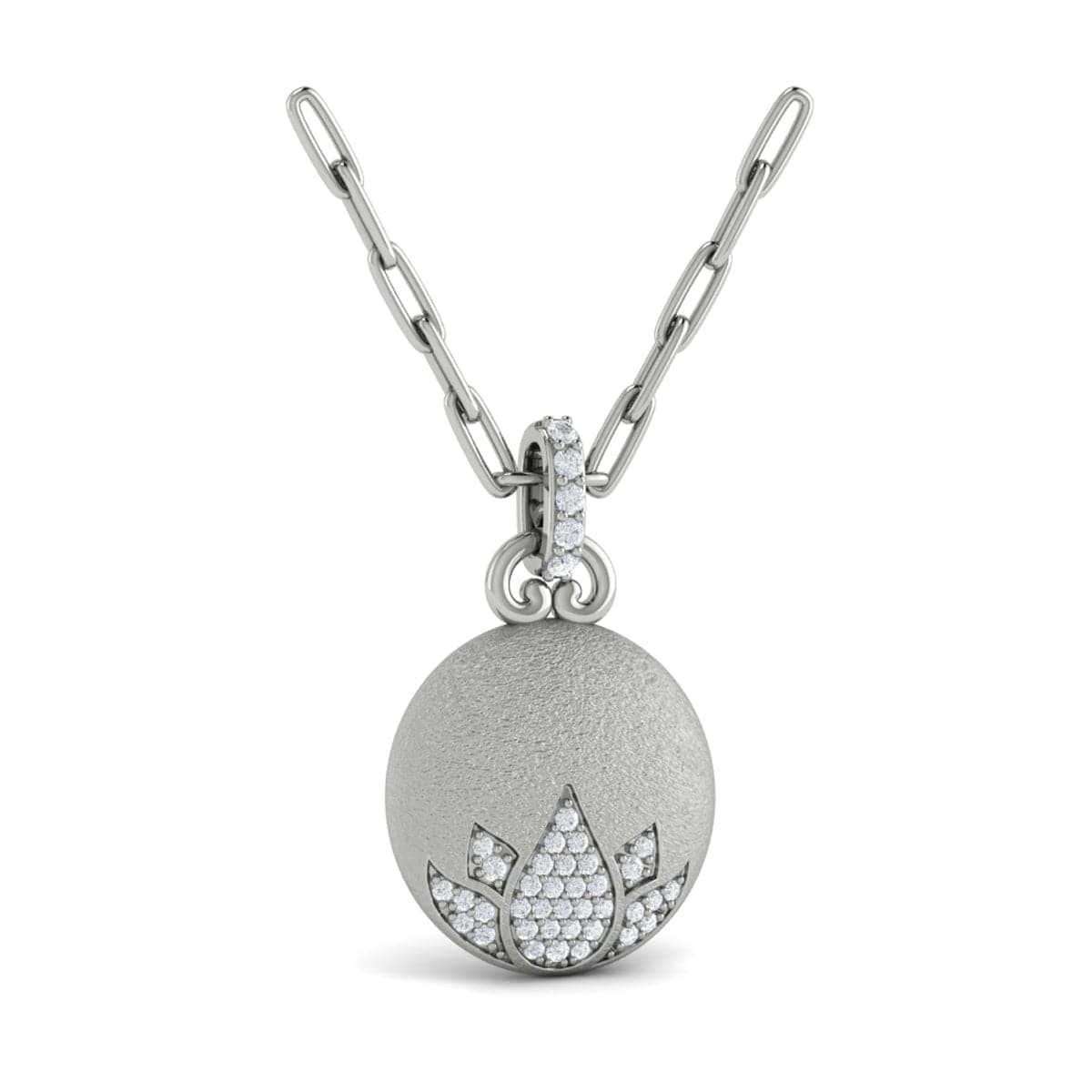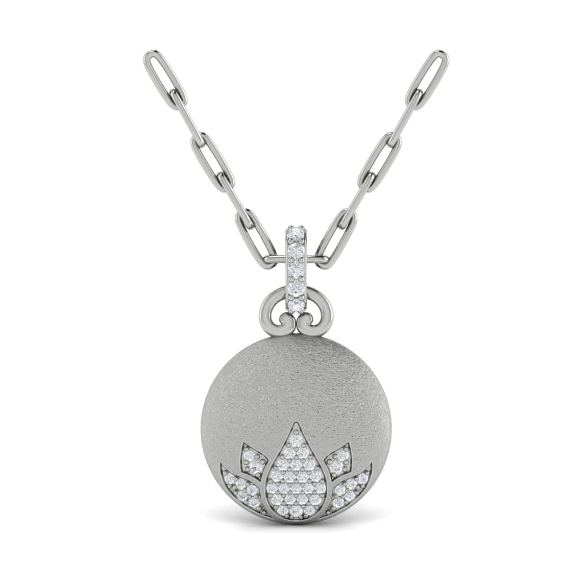 Diamond Lotus Flower Pendant Link Necklace