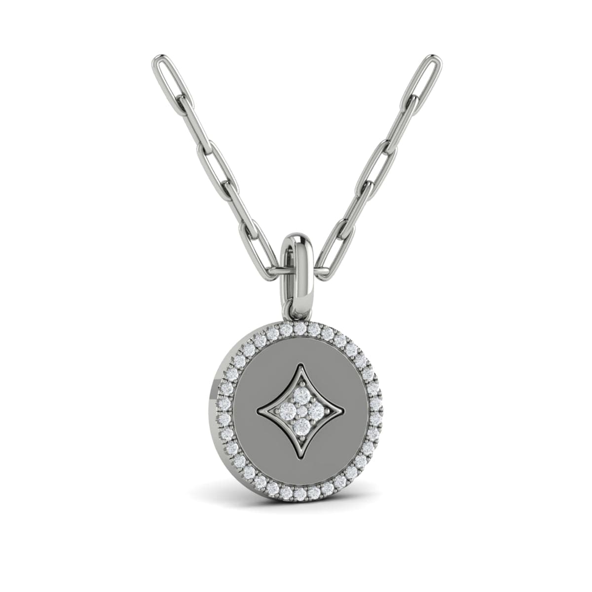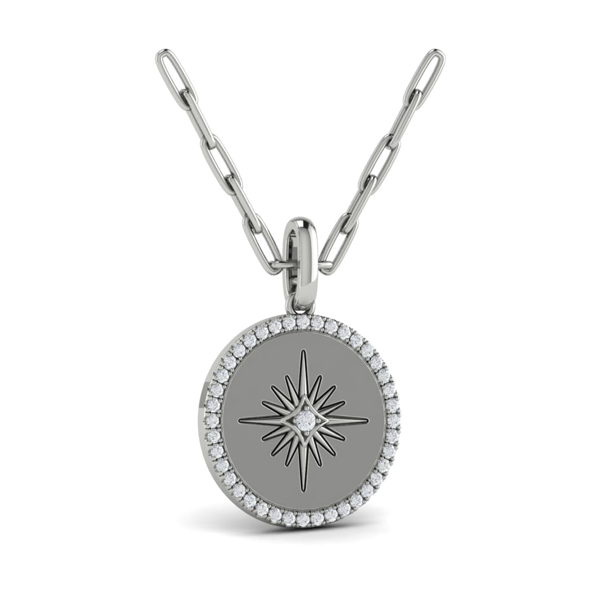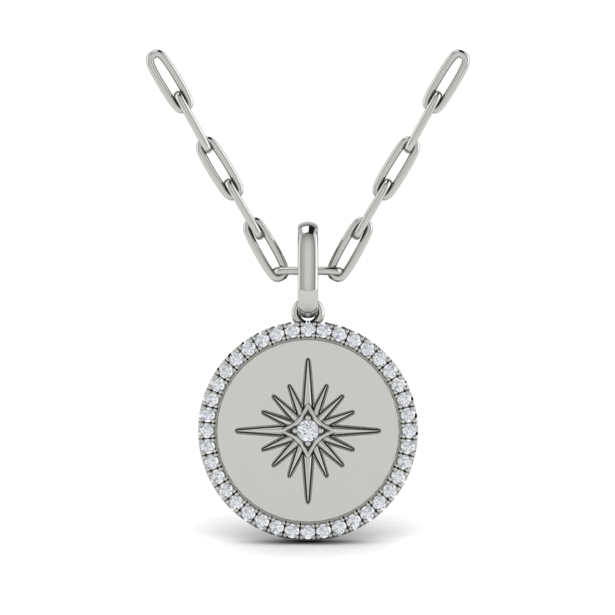 Diamond Sun Pendant Link Necklace