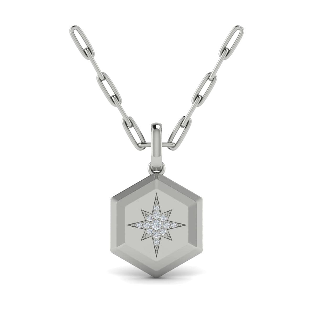 Center Starburst Diamond and Bezel Hexagon Pendant Necklace