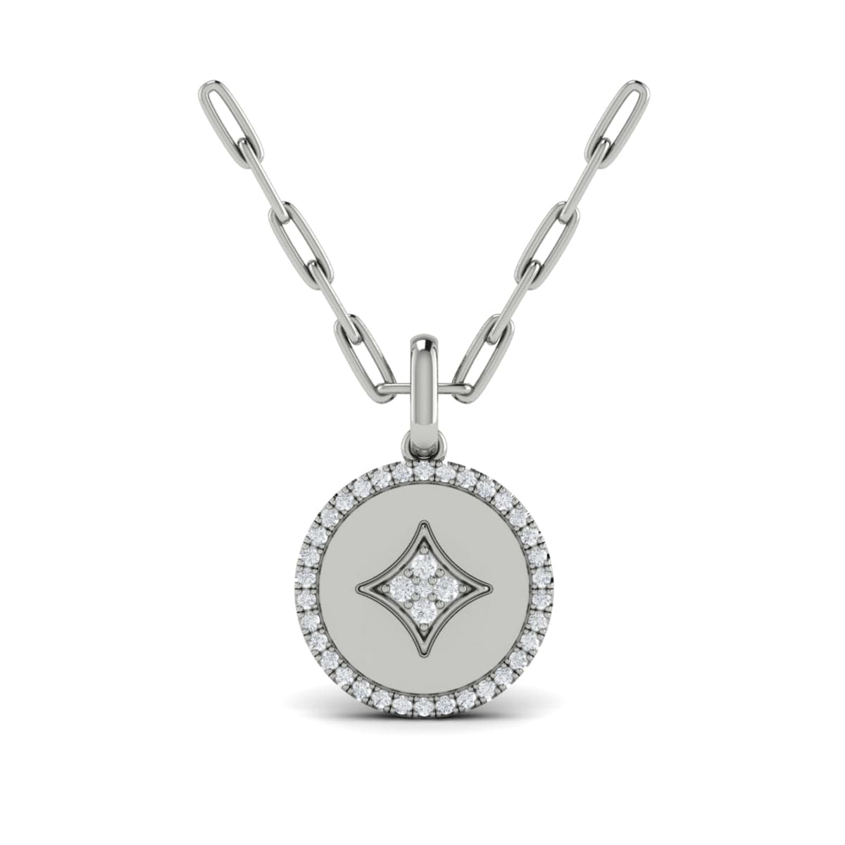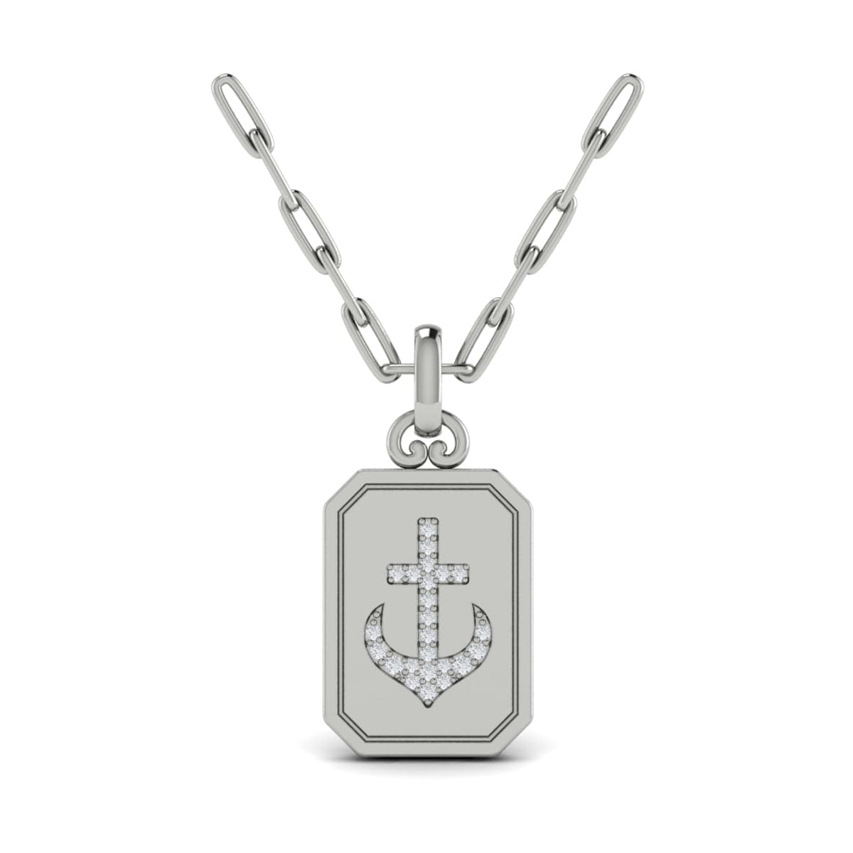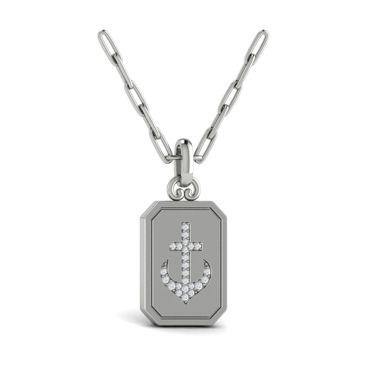 Diamond Anchor Medallion Pendant Link Necklace