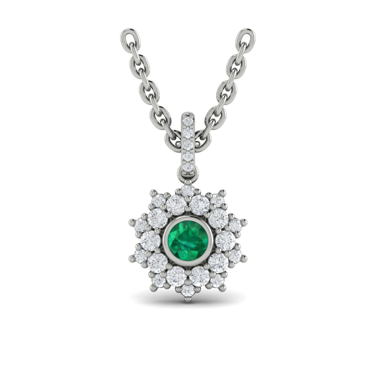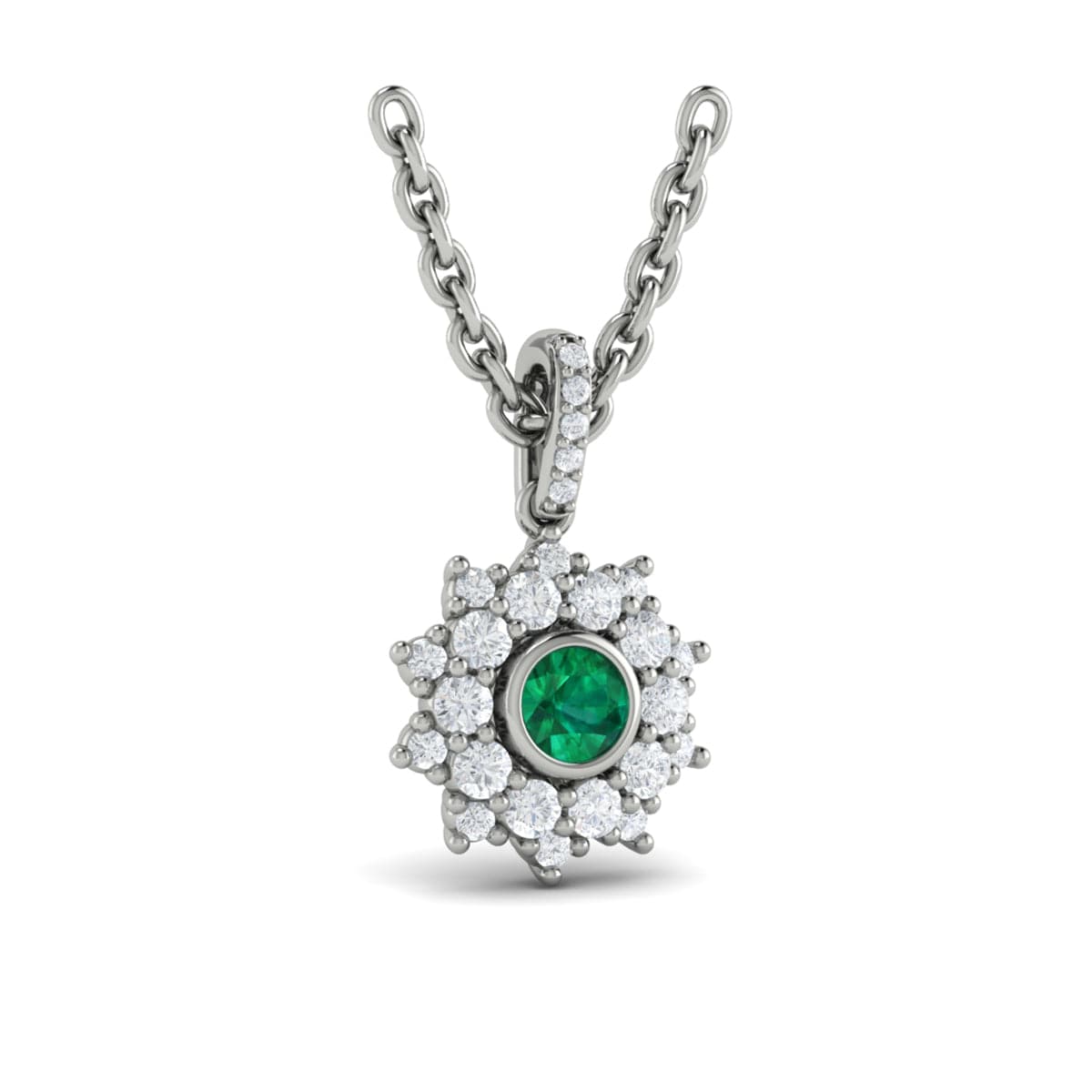 Diamond Star Cluster and Emerald Pendant Necklace