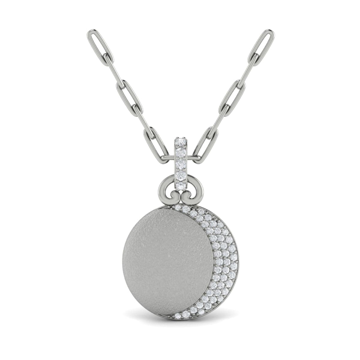 Diamond Moon Pendant Link Necklace