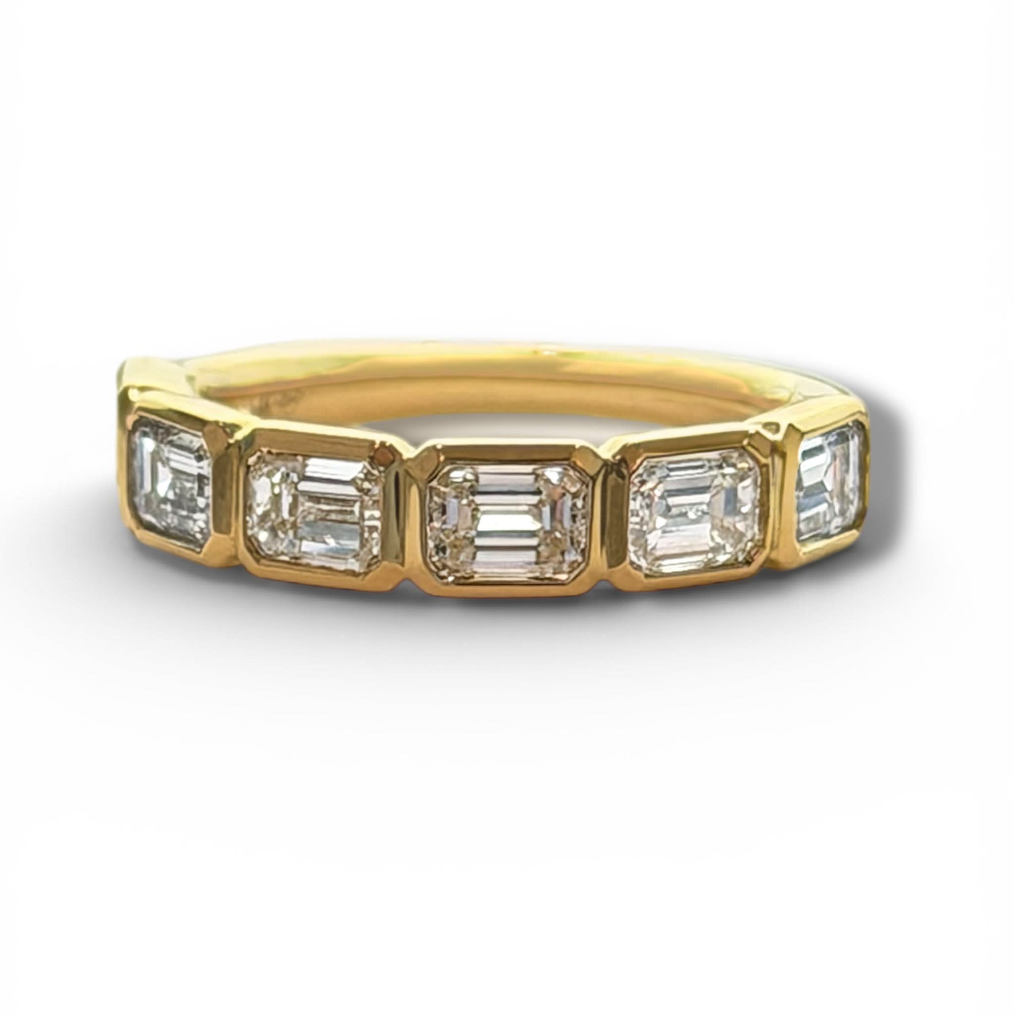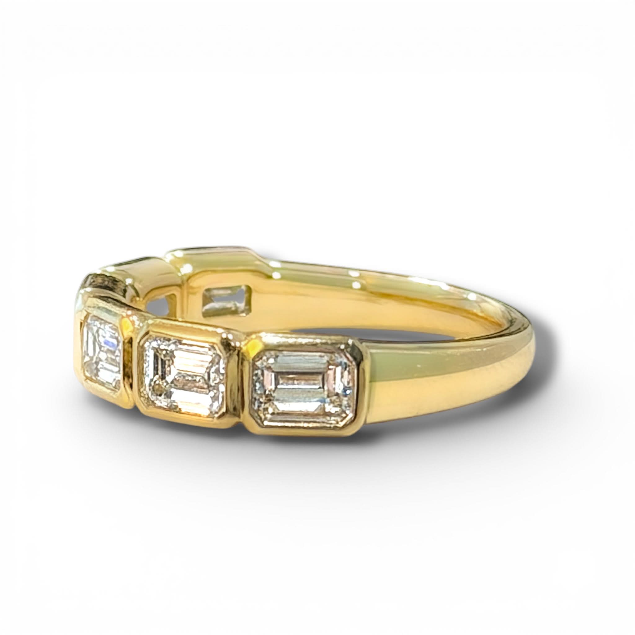 East West bezel set emerald cut band