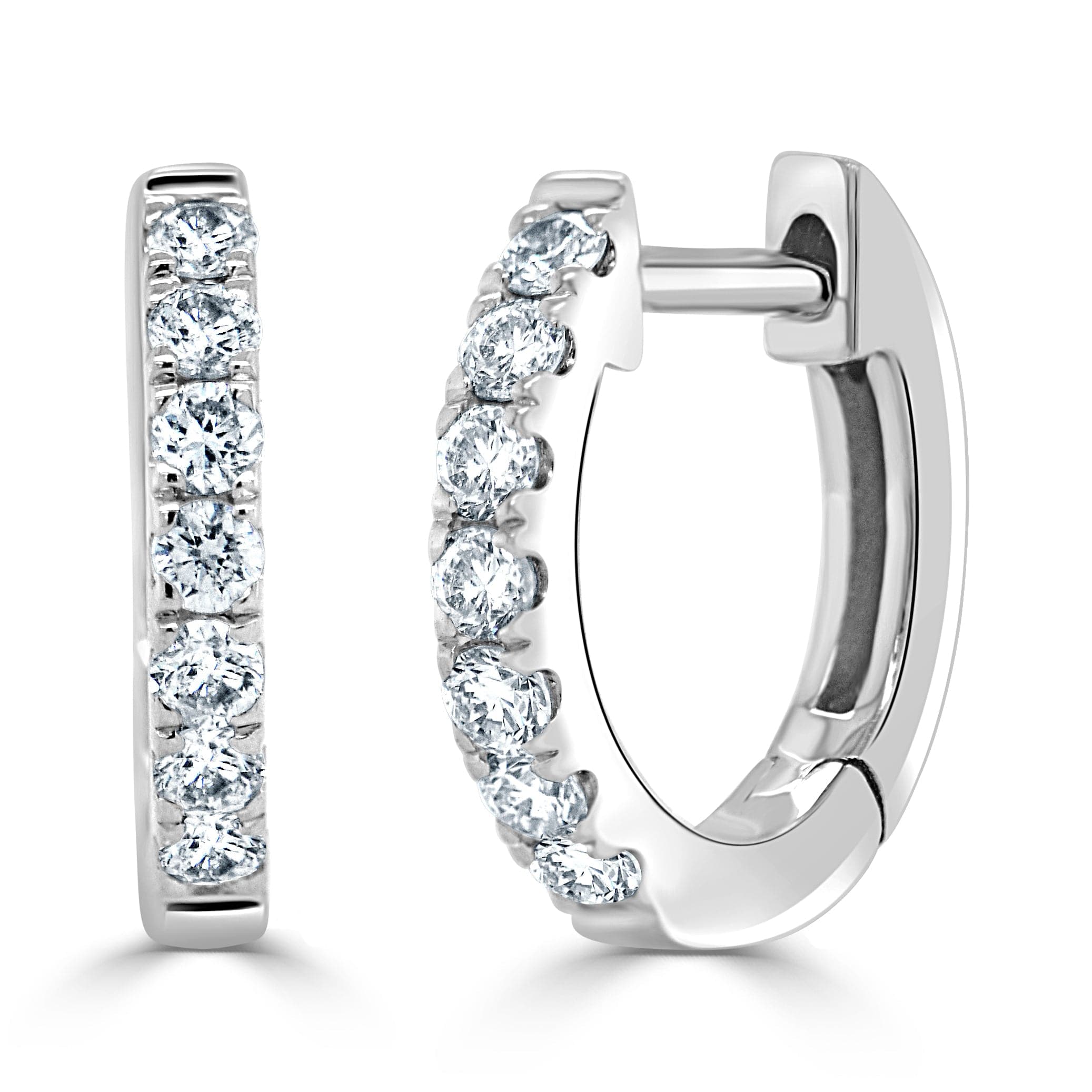 14k Gold & Diamond Point Hoop Earrings 3/4"